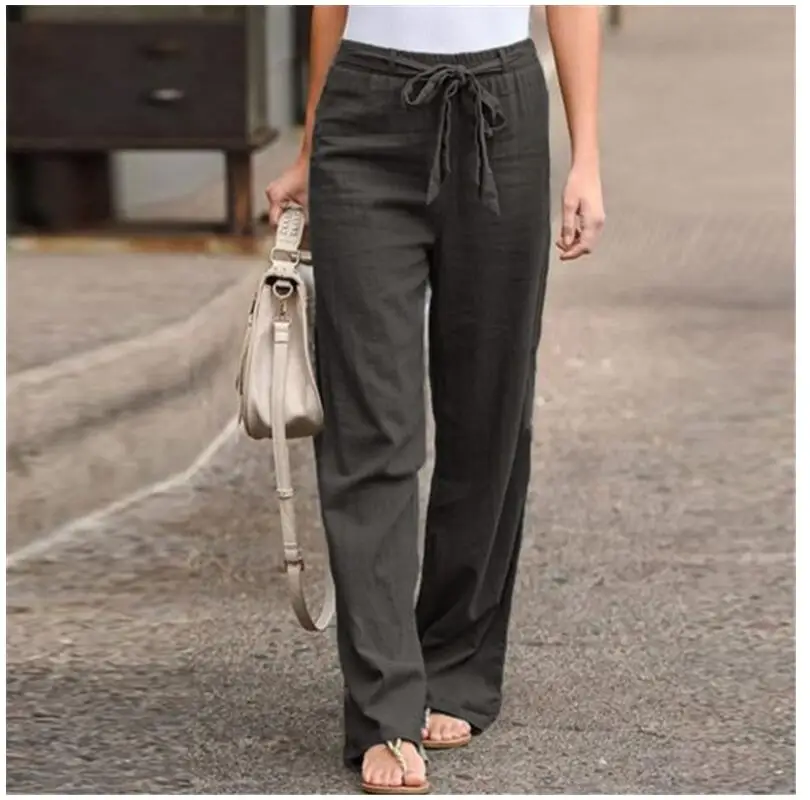 Женские прямые брюки с поясом, Однотонные эластичные брюки с высокой талией, черныетемно-синиеУгольныехаки
