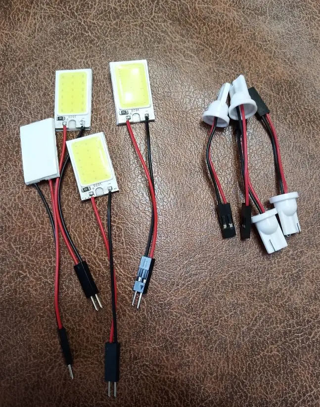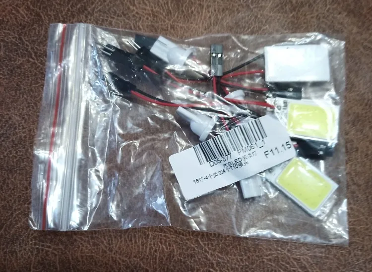 Товар получил через 19 дней с момента заказа. Упаковано в прозрачном зип-пакетике с наклейкой. В комплекте 4 штуки сов-панели, на каждой по 18 диодов (3х6) и 4 адаптера-переходника под цоколь Т10. Светят очень ярко и сильно греются, потребляемый ток 160 мА, на каждом панели толстый вспененный двухсторонний скотч. Ток матрицы ограничен резистором 20 Ом. Цвета проводов на некоторых панелях перепутаны (черный +) - видно на фото. Очень доволен заказом, хотел ещё заказать, но теперь они в два раза дороже у этого же продавца. Рекомендую товар и продавца.