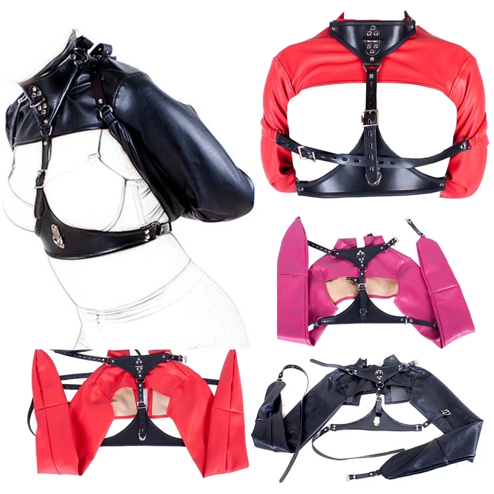 Фетиш Женская Открытая грудь без кожезаменителя Топ садо-мазо связывание ограничитель прямая куртка секс-костюм секс-игрушка