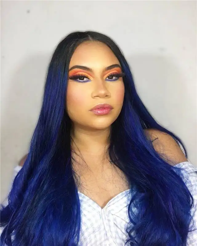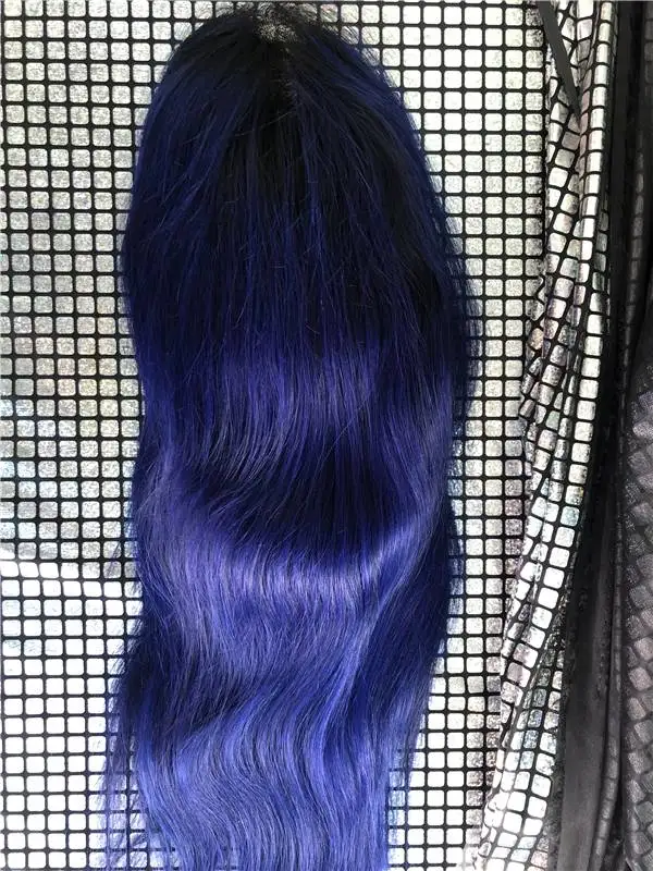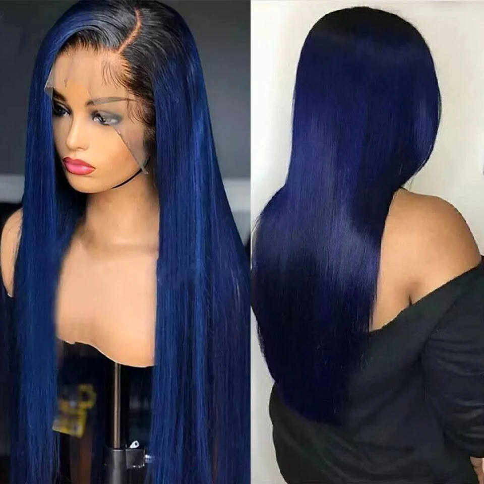 Темно-синий парик из человеческих волос на сетке спереди с эффектом омбре, цветной парик на сетке спереди, бразильский парик без повреждений, прямой парик на сетке для женщин KL
