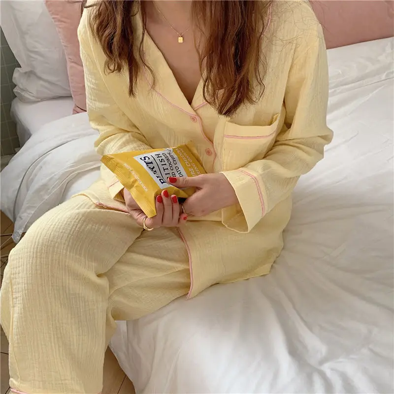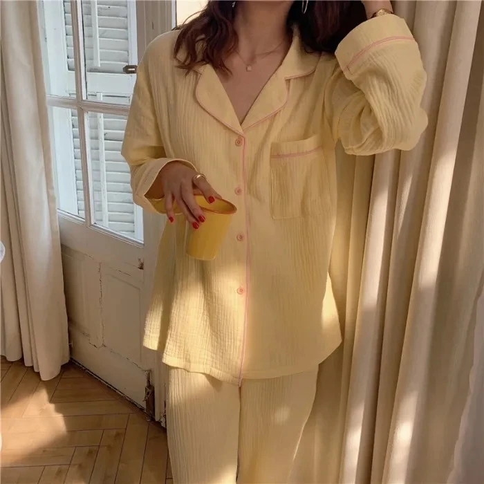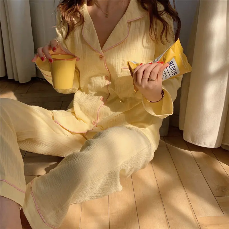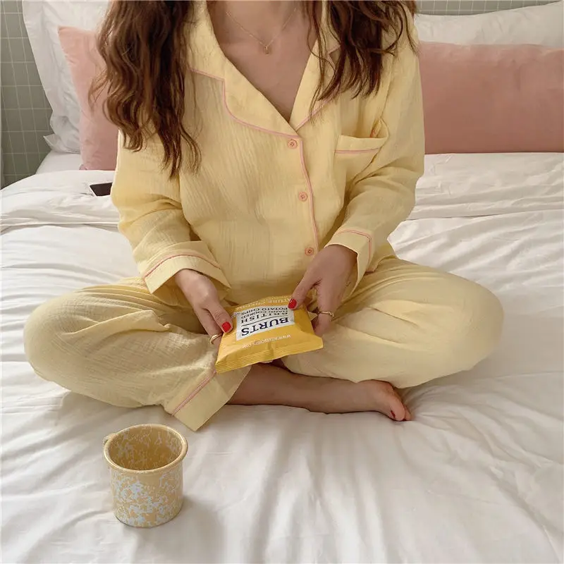 Осенний домашний костюм для весны, Женский пижамный комплект, хлопковые брюки, одежда для сна с длинным рукавом для отдыха, женская одежда для сна, домашний костюм