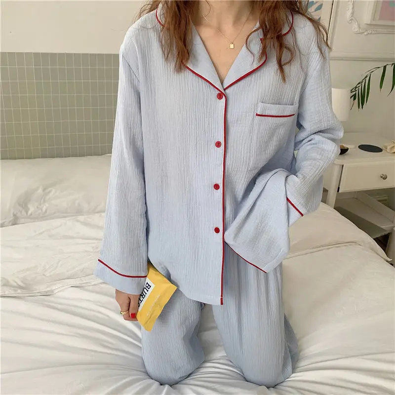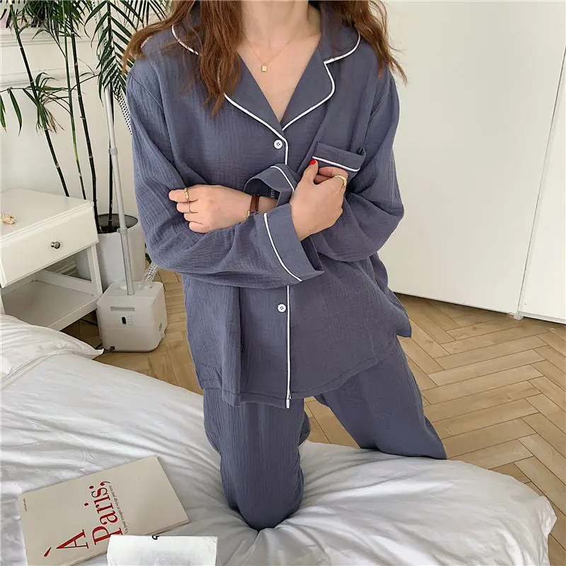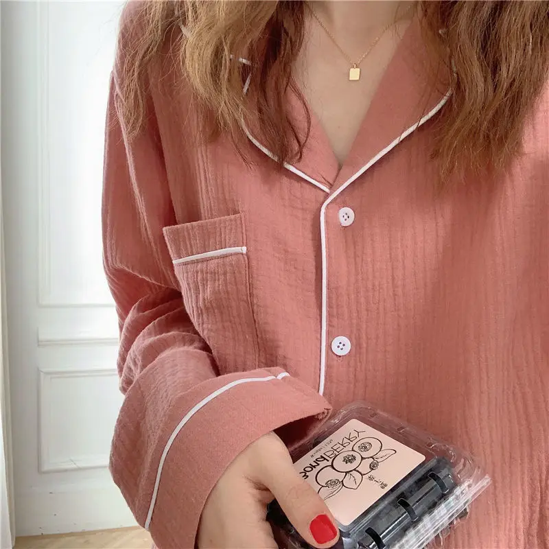 Новинка, двухслойная Хлопковая пижама, женский Кардиган с длинным р...