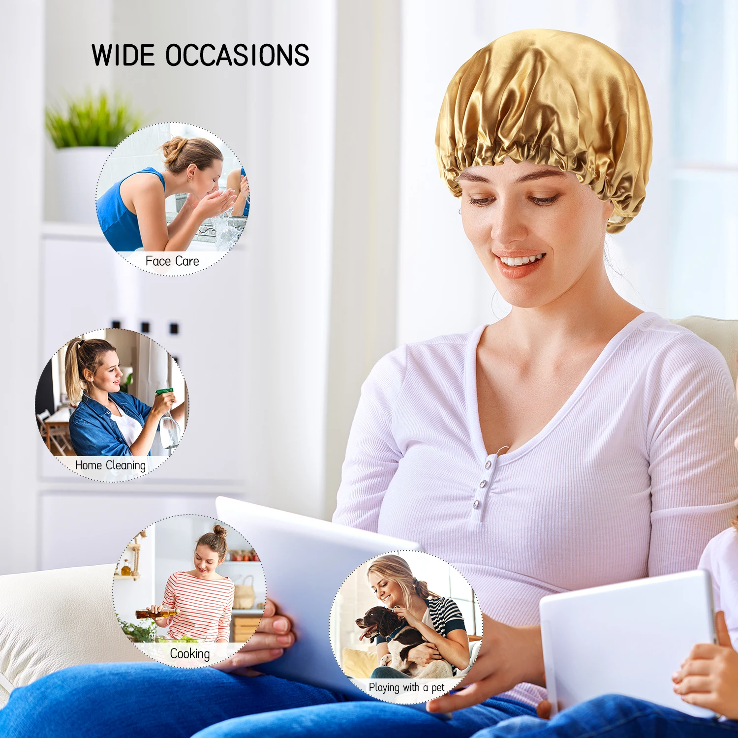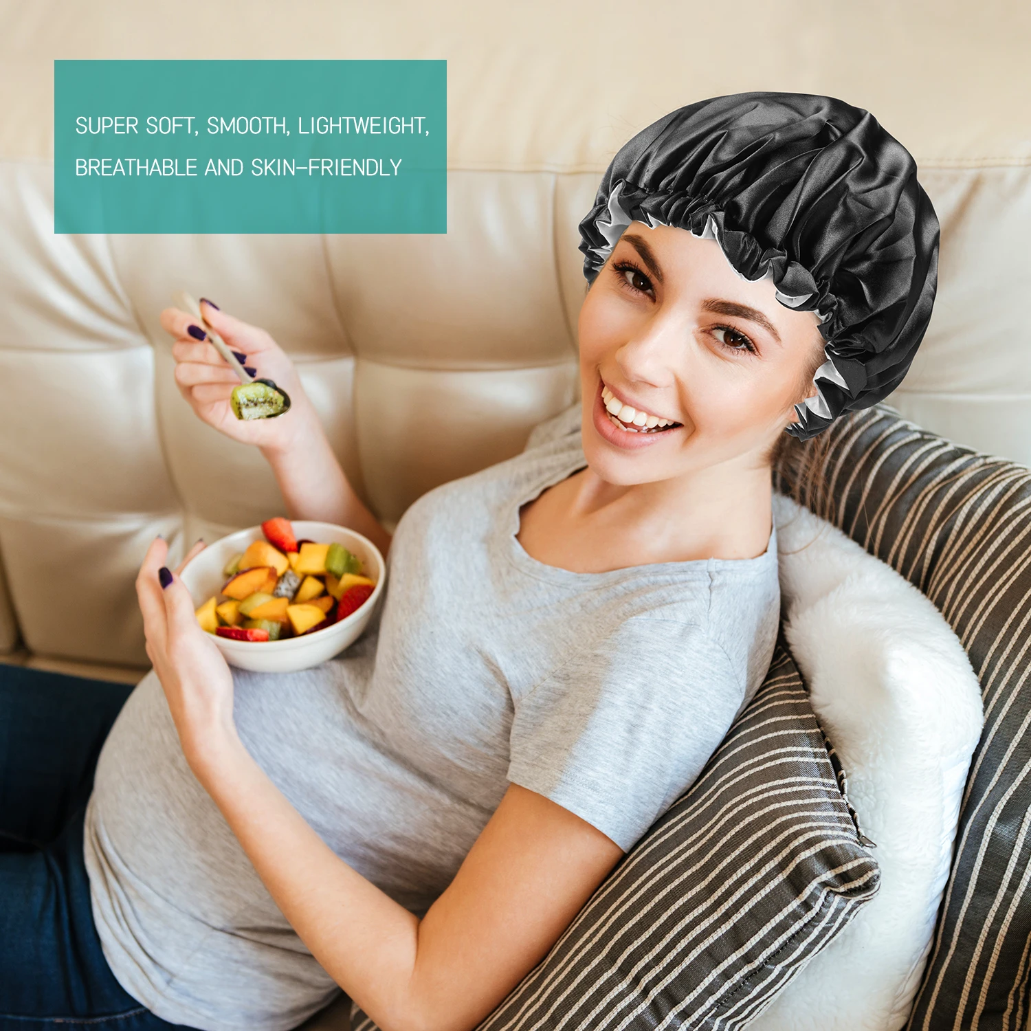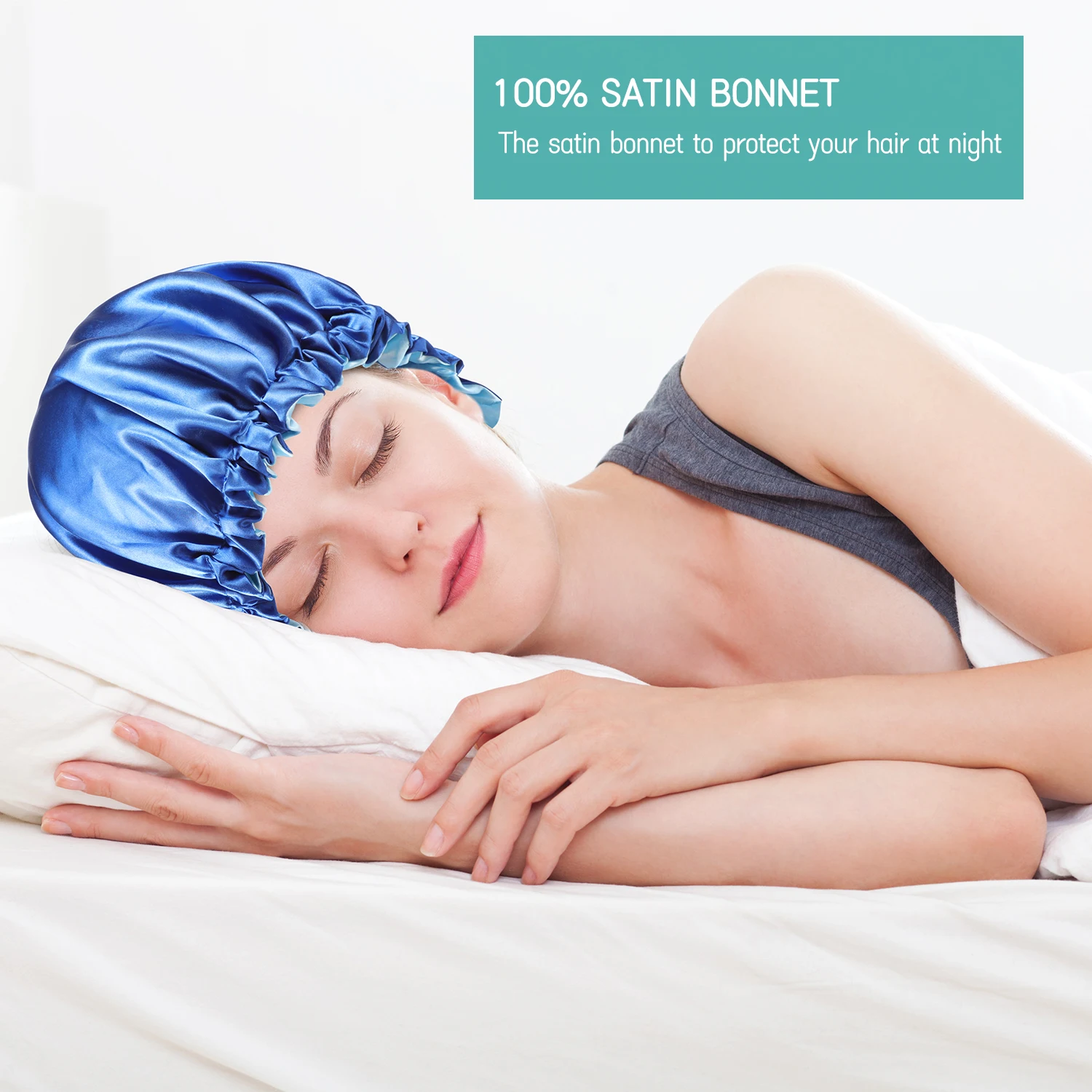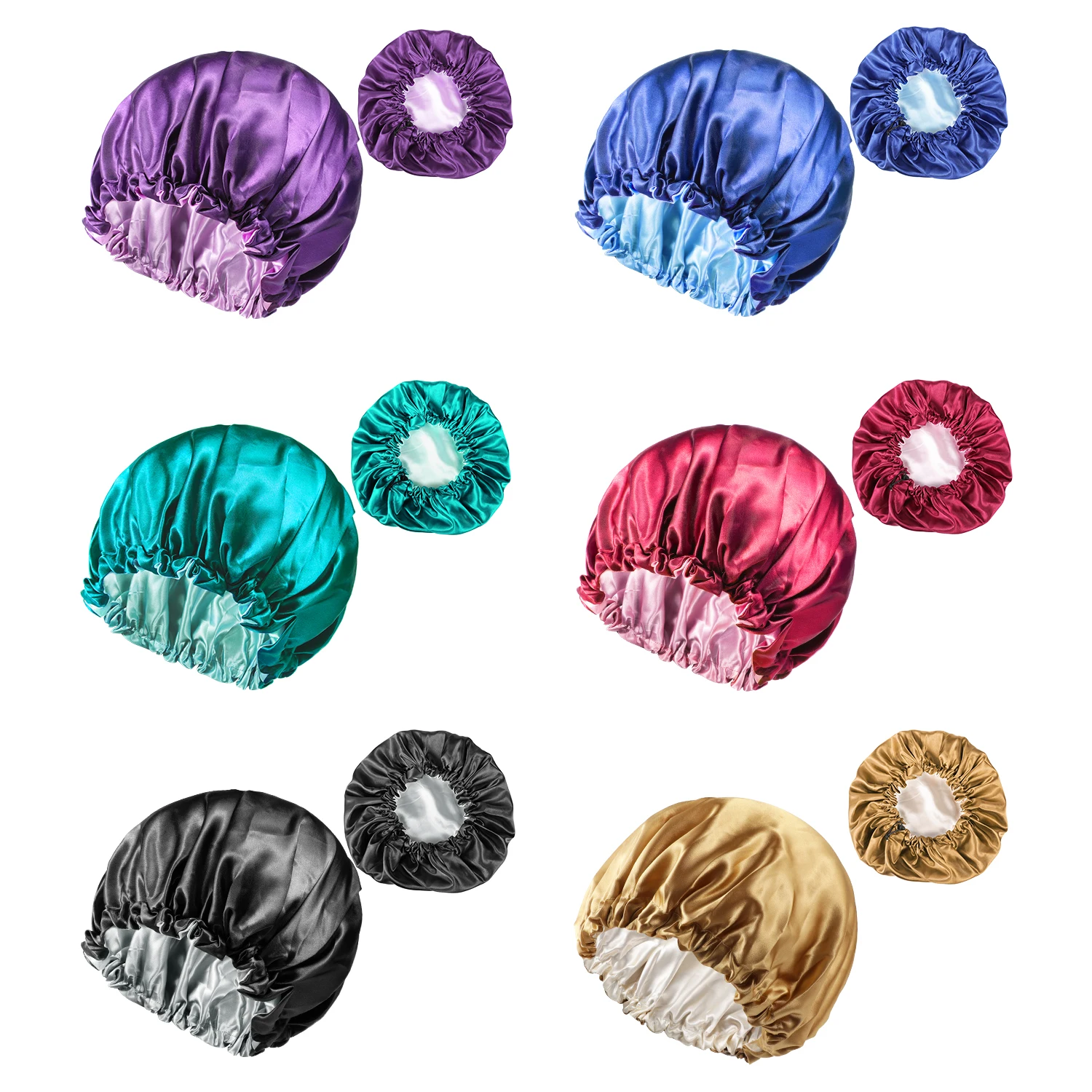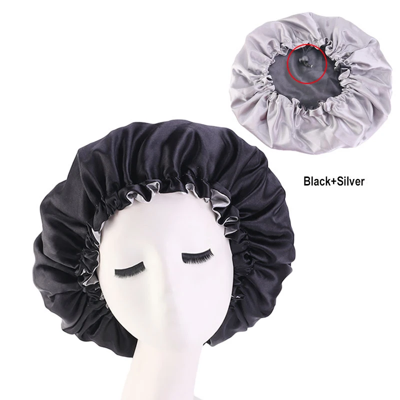 Регулируемая Атласная шапочка для сна, шелковая атласная Кепка, шапочка для ночного сна, двусторонняя двухслойная шапочка X-большого размера