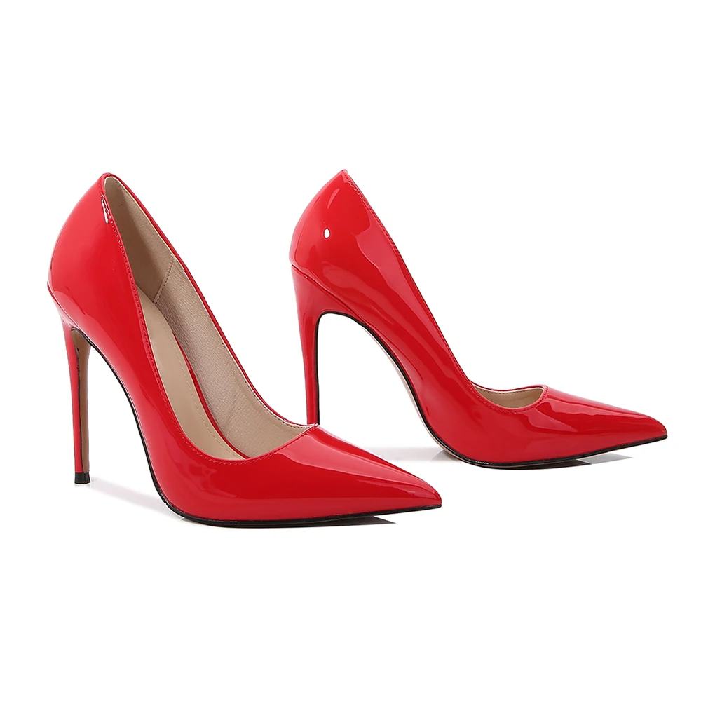 Туфли-лодочки Женские однотонные на шпильке 12 см, пикантные классические, из лакированной кожи, на очень высоком каблуке, заостренный носок, Свадебная обувь для вечеринки, фотоальбом 46