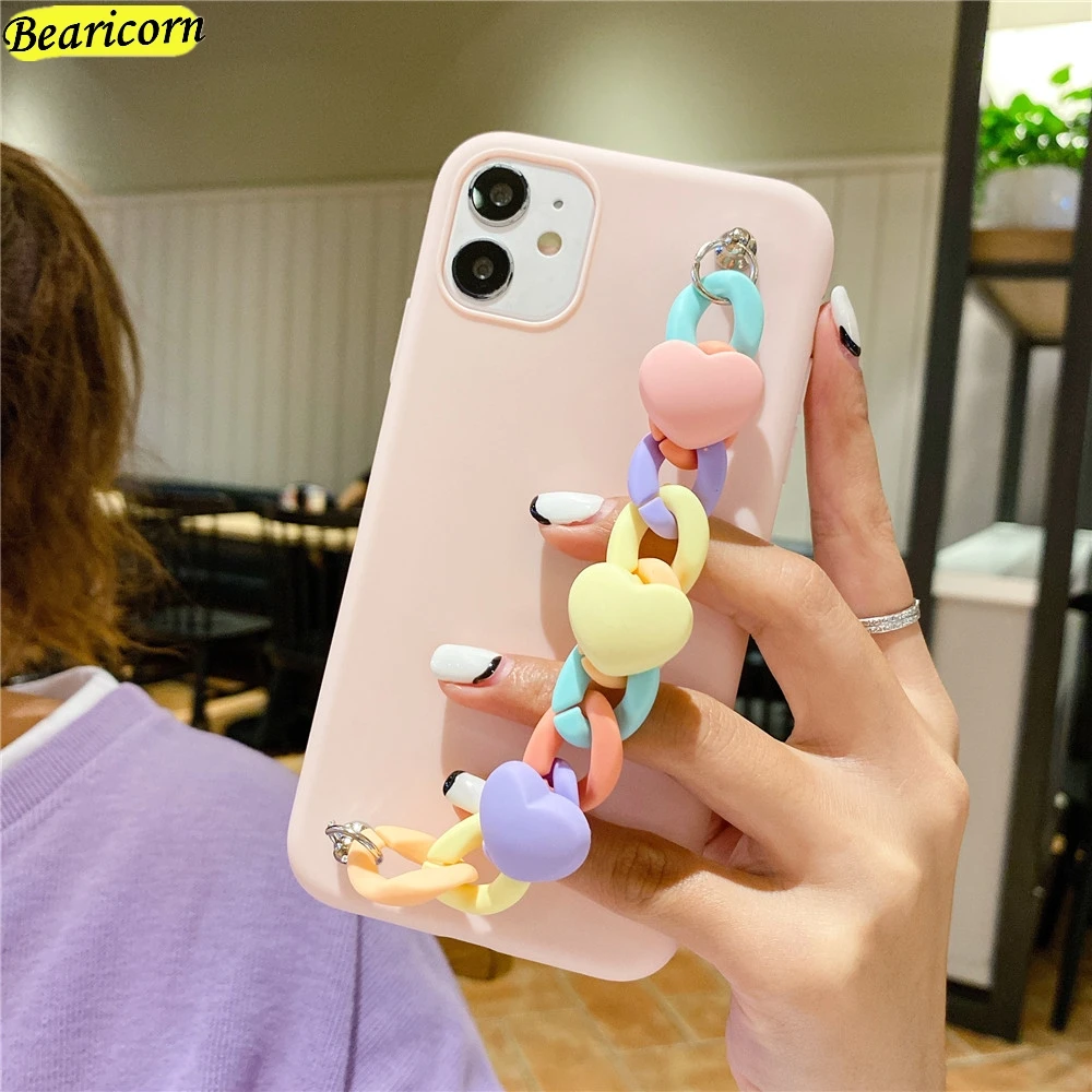 Чехол для телефона OnePlus 6 6T 7 7T 8 8T 9 Pro, мягкий чехол из ТПУ с браслетом на запястье, с сердечками, карамельных цветов