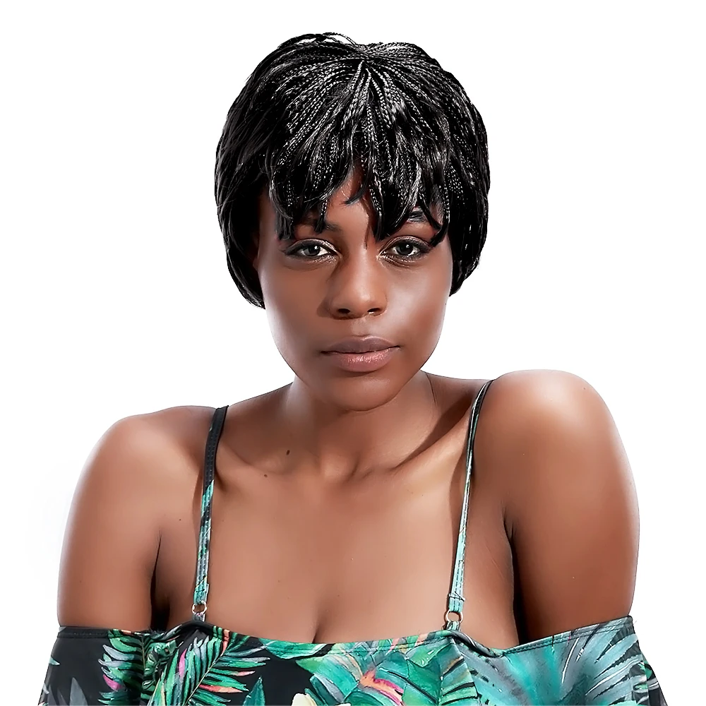 Бесплатная красота короткие плетеные косички в коробке Синтетические Черные 12 дюймов парики для волос с челкой для черных женщин ежедневное Термостойкое волокно