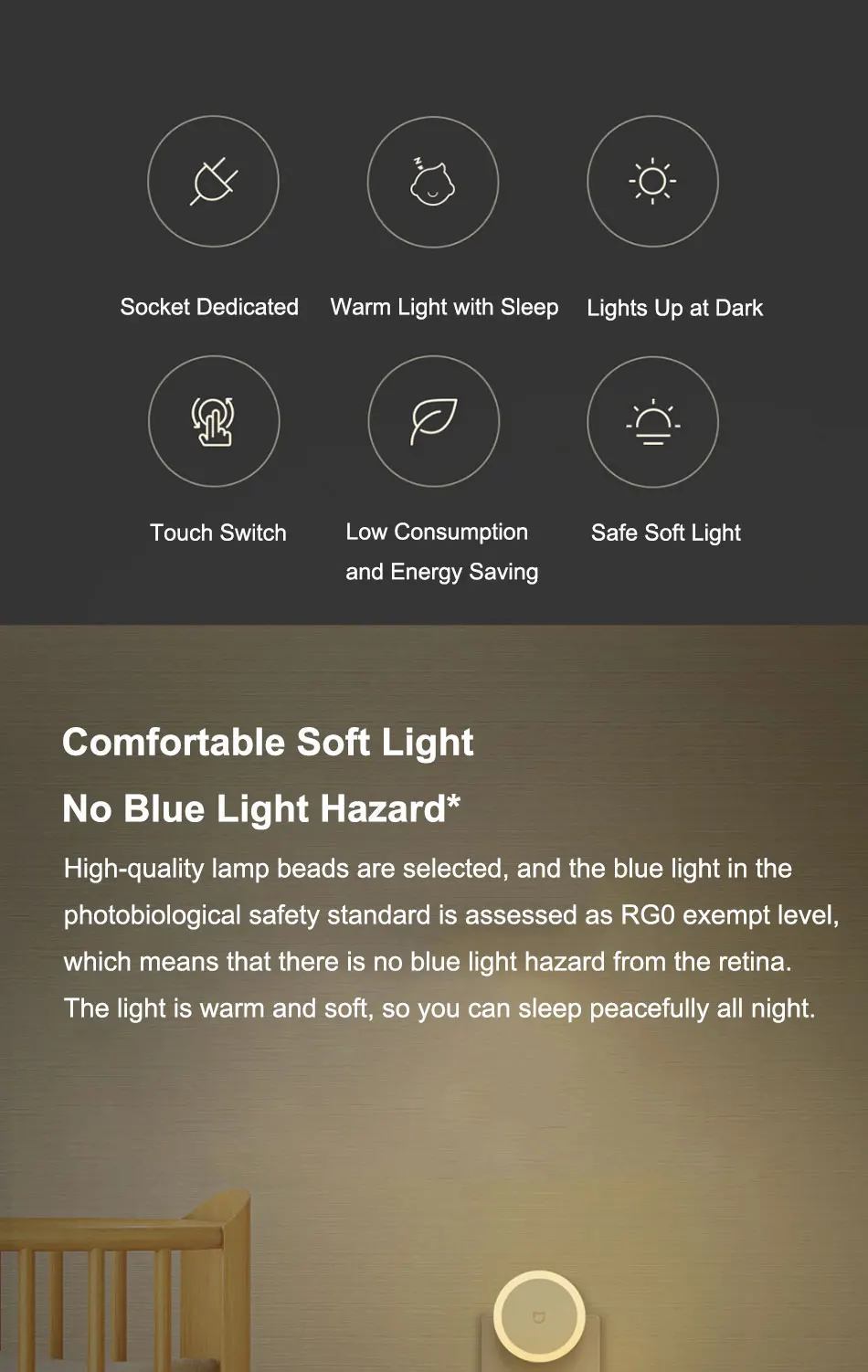 Xiaomi Mijia плагин ночник умный датчик освещения Сенсорный режим Mi Светодиодная лампа комфортный мягкий свет для дома коридора спальни прохода