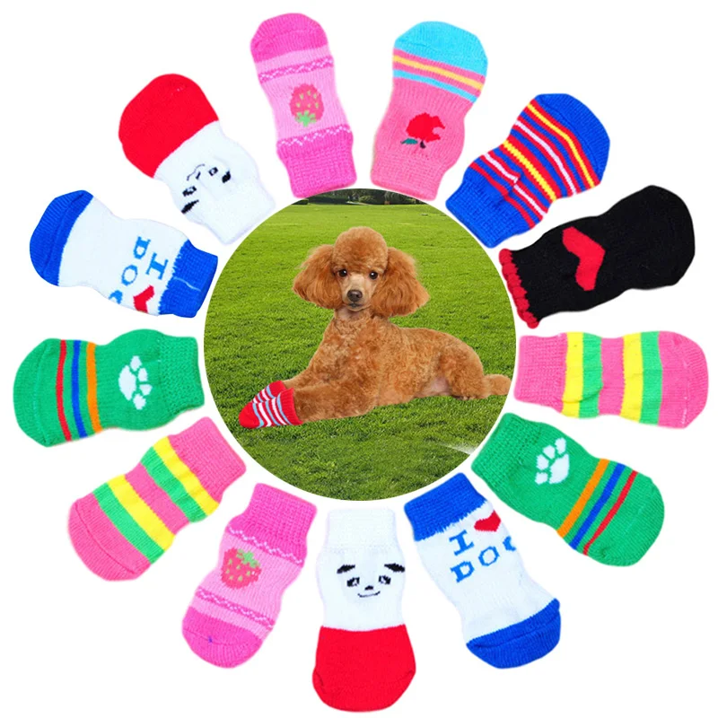 Осенне-зимние носки для собак, нескользящая вязаная обувь для маленьких собак, Толстая теплая защита лап, милый щенок, кошка, домашняя одежда, ботинки