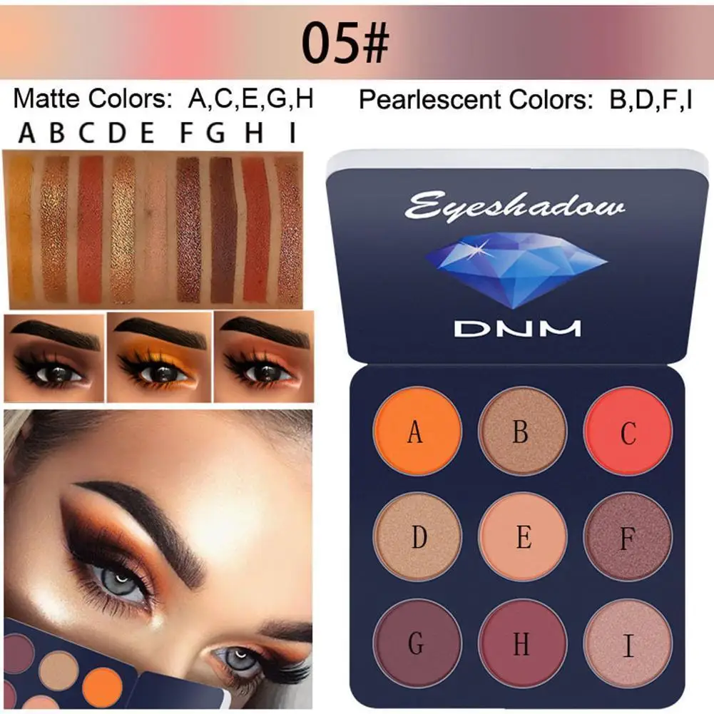 Палитра теней для век, 9 цветов, матовое стекло с перламутровым эффектом, Алмазные блестки, блеск пудра, водостойкие, стойкие, косметические