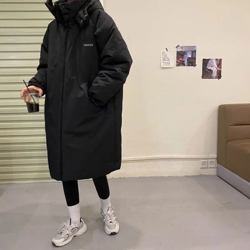 Зимняя куртка в стиле Харадзюку, длинная хлопковая куртка с капюшоном, нормкор, минималистичное пальто, простой дизайн, Женская парка, эмо индийская, верхняя одежда в эстетике