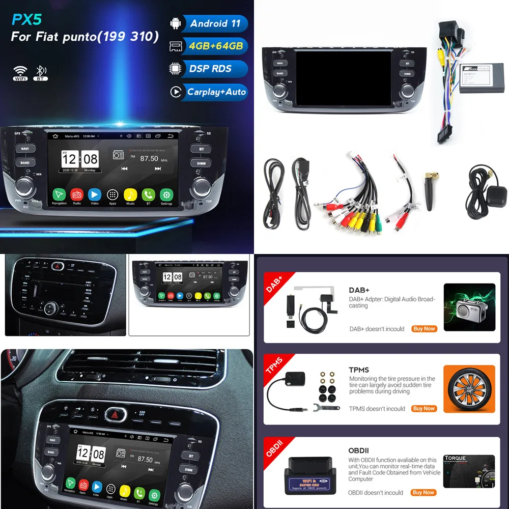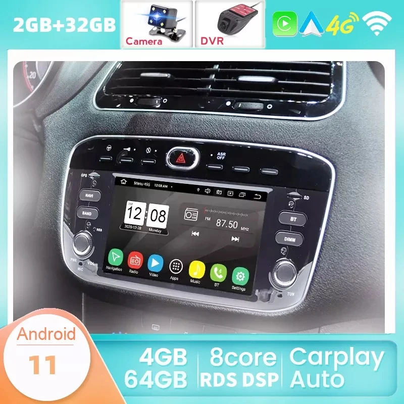 Автомобильный радиоплеер RDS Android 11 для Fiat Linea Punto Evo 2012 2013 2014 2015 GPS навигация Поддержка камеры Carplay Wifi BT DVR