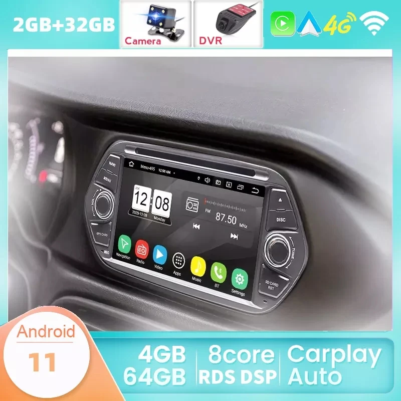 Головное устройство Carplay 2 Din Android 11 видеоплеер для Fiat Du...