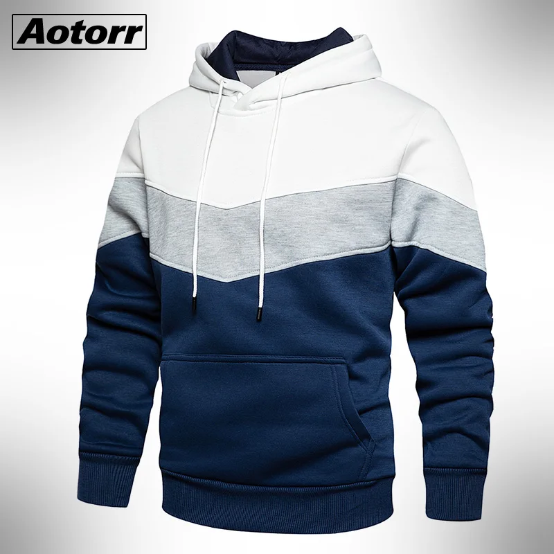 Пуловер с капюшоном, толстовки в стиле пэчворк, свитшоты, Мужская Н...
