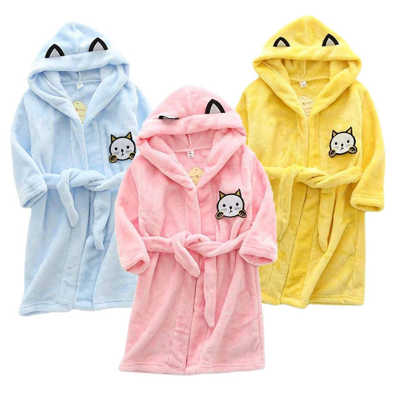 Халат детский фланелевый с капюшоном, мультяшный Кот, банный халат для маленьких девочек, одежда для сна, домашняя одежда для мальчиков