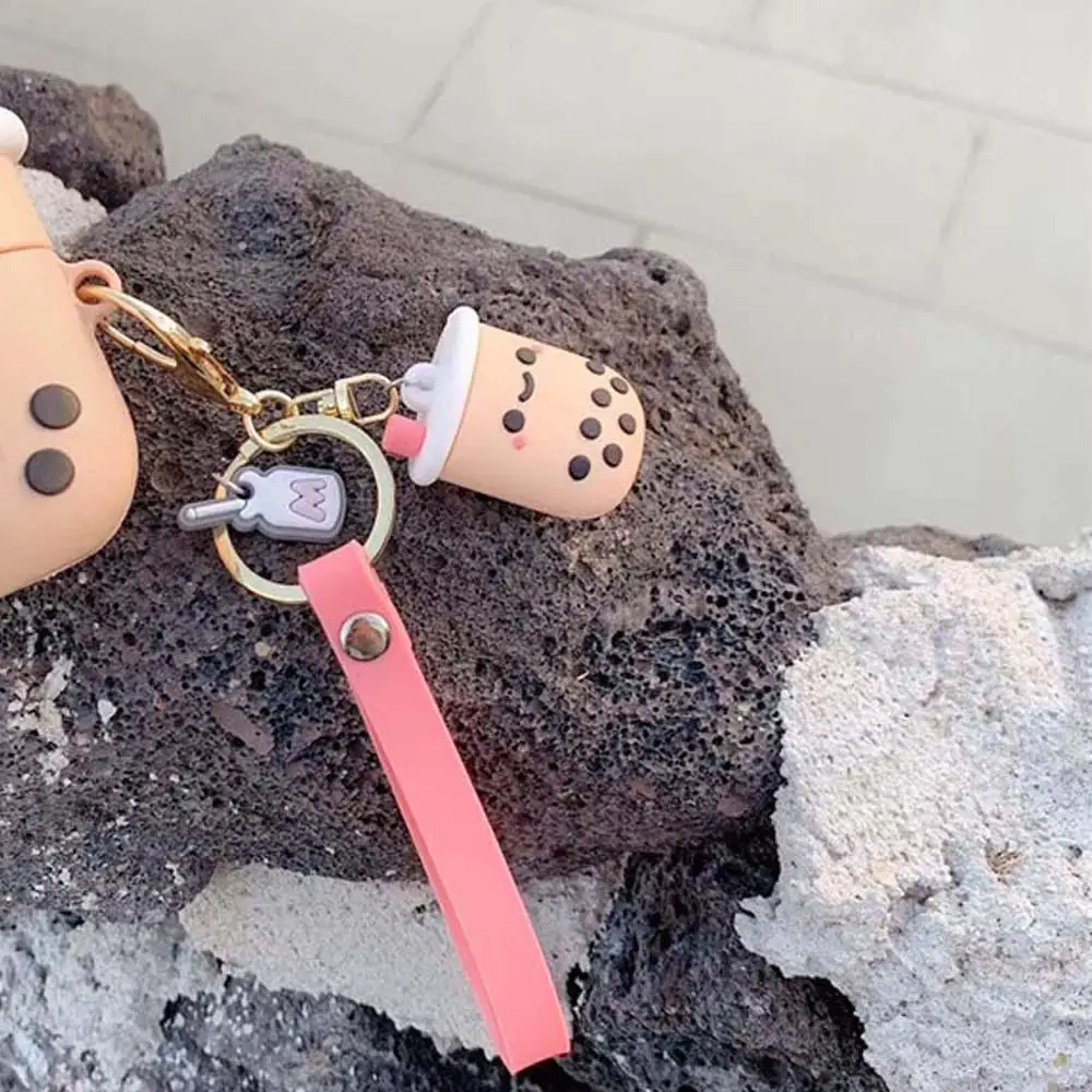 Силиконовый жемчужный милый брелок для ключей с молочным чаем, женс...
