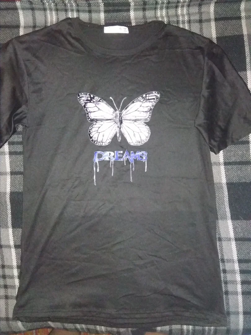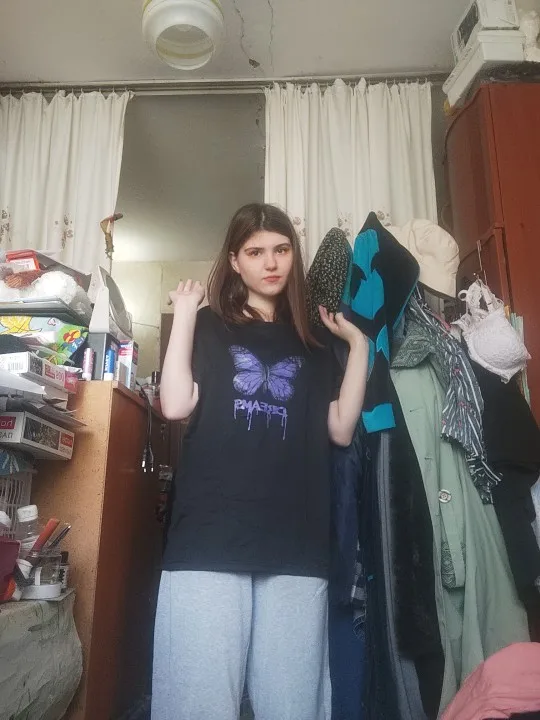 футболка красивая, но я ожидала получше, качество странное, и я думала что будет оверсайз, а она оказывается в обтяжку