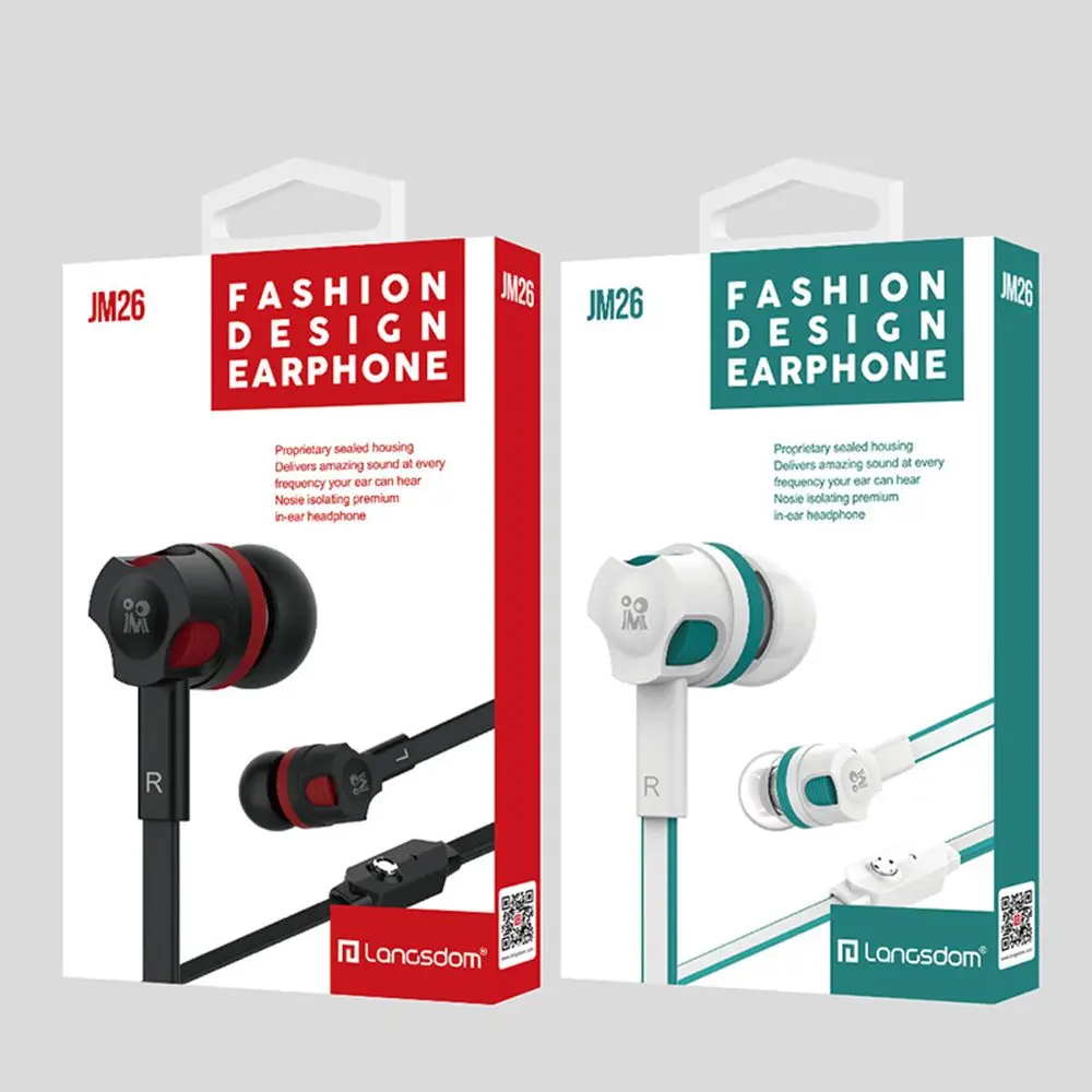 Проводные наушники-вкладыши с микрофоном Langsdom JM26 для бега, спорта, басов, 3,5 мм