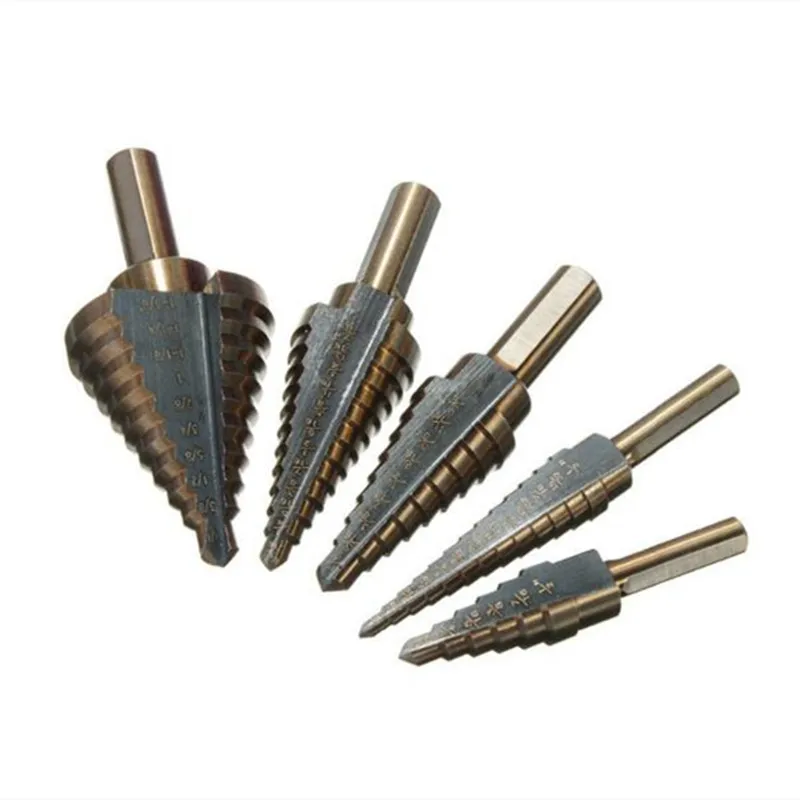 Сверла JINRUI, в британском стиле, 5 шт., в форме пагоды, высокоскоростное стальное устройство для открывания отверстий, набор треугольных ХВОСТОВИКОВ, Черное и желтое ступенчатое сверло, ступенчатое сверло