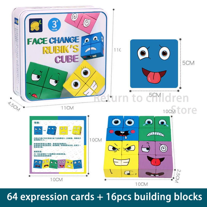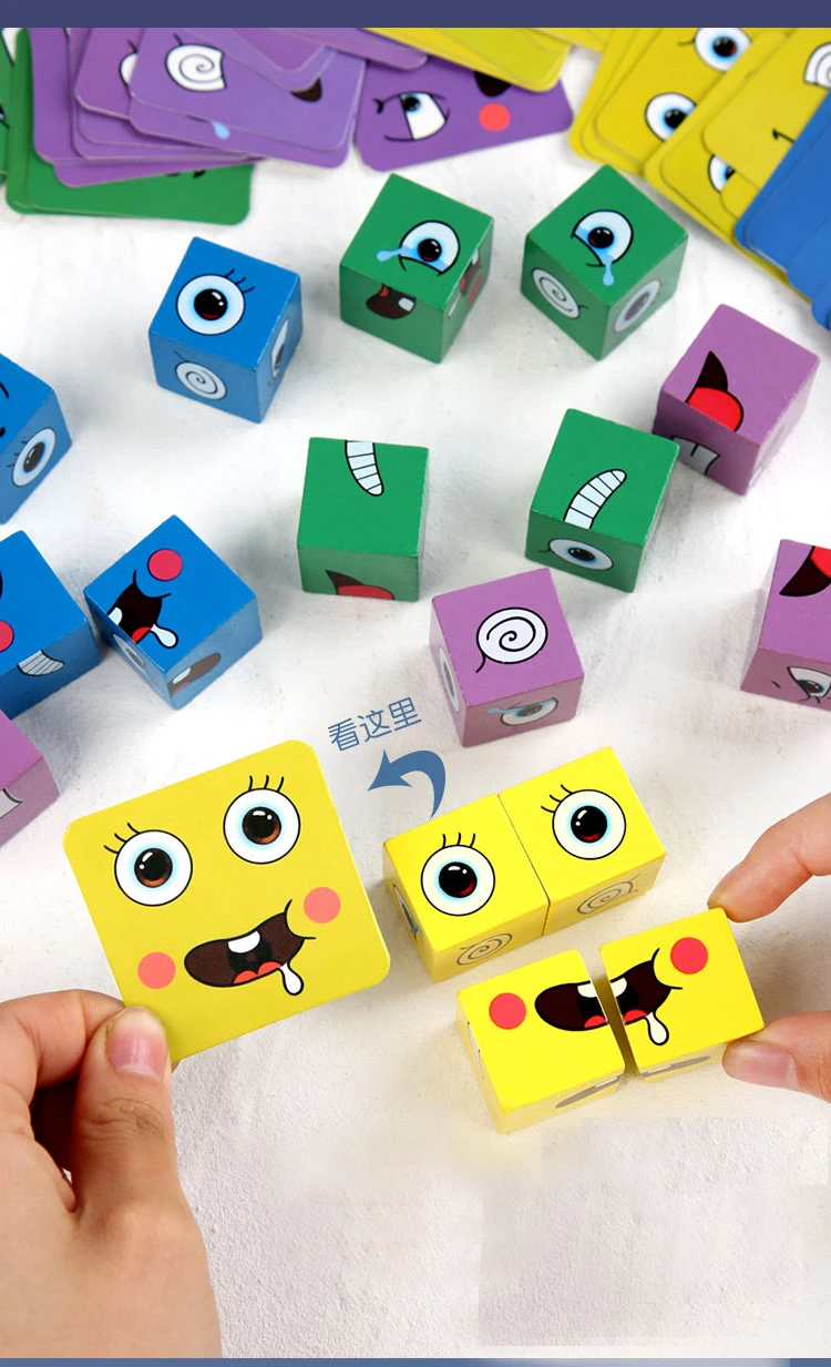Обучающие игрушки с эмоциями, меняющие блоки, пазлы с выражениями, раннее обучение, Монтессори, детские деревянные кубики, настольные игры, матчи