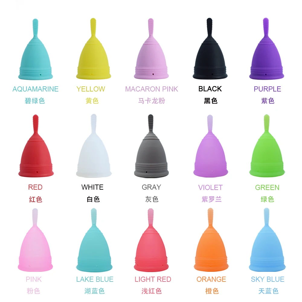 Цвет менструальной чашки: розовый, синий, белый, черный, красный, фиолетовый