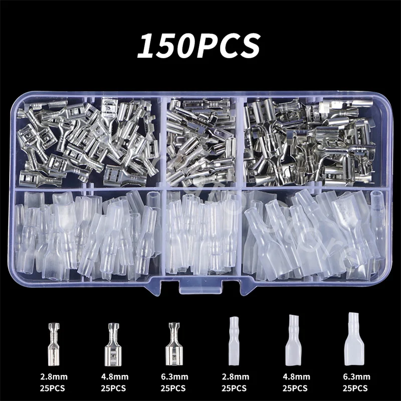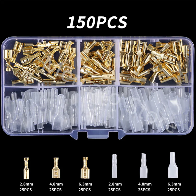 Спецификация:Материал: латунь + пластикЦвет: Золотой/Серебряный и прозрачныйРазмер: прибл. 2,8/4,8/6,3 ммТолщина: прибл. 0,5 ммРазмер провода: 22 ~ 16AWG (0,5 мм2;-1,5 мм2;)Количество: 100 шт.Прочный и простой в установкеОчень удобный и практичный Размер:-25 шт 2,8 мм Женский терминал-25 шт. 4,8 мм на мини-разъем «мама»-25 шт 6,3 мм Женский терминал-25 шт оболочка 2,8 мм-25 шт. оболочка 4,8 мм-25 шт. оболочка 6,3 мм Посылка включает в себя:75 x гнездовые разъемы75 x изоляционный рукав