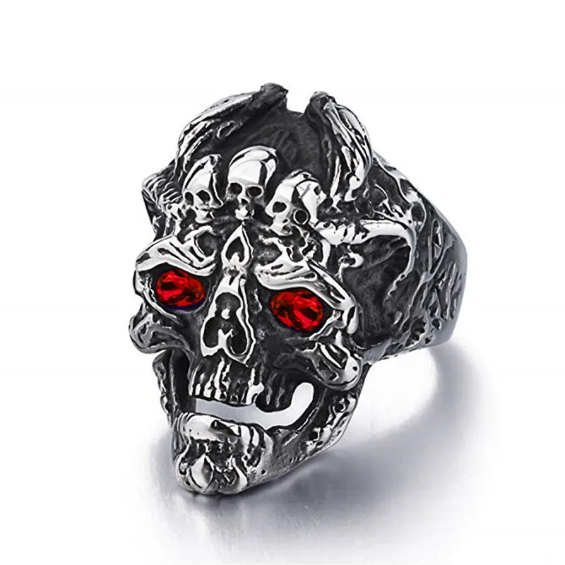 Винтажное мужское твердосплавное кольцо в виде черепа, инкрустированное глазами, синий, зеленый, красный, кубический цирконий, крутые готические панк байкерские ювелирные изделия для мальчиков, оптовая продажа