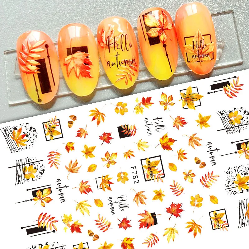 Наклейки для дизайна ногтей, 1 лист, осенний кленовый лист, 3D золотые осенние наклейки, клейкие слайдеры, украшения для маникюра ногтей