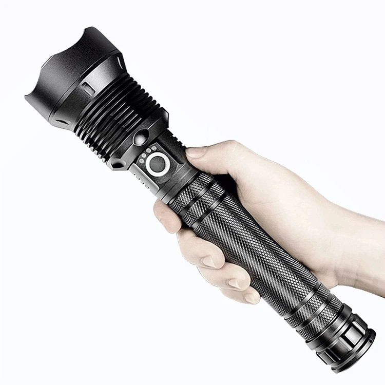 Мощный светодиодный фонарик использует XLamp XHP70.2 светодиодный фонарик для максимальной выходной мощности до 90000 люменов (максимум люменов).Аккумуляторный отсек для увеличения рабочего времени. Дисплей емкости аккумулятора, телескопический зум Micro usb для компьютера USB, Автомобильный USB, USB зарядный разъем, зарядный фонарик.Изготовлен из авиационного алюминиевого сплава прочный HAIII военный класс Жесткий анодированныйВодонепроницаемый в соответствии с IPX-4, водостойкий, может использоваться в дождливую погоду, но не может положить его в воду.Подходит для работы, охоты, альпинизма, рыбалки, кемпинга и активного отдыха и т. д. ударопрочный до 2 метров.