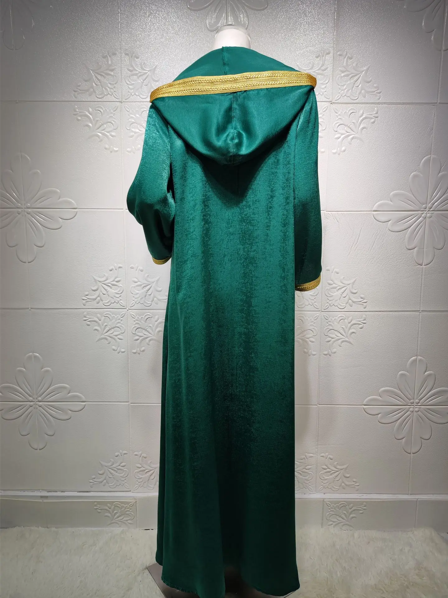 Платье-абайя женское с капюшоном, Дубай, арабское мусульманское, цвет шампанского, марокканский кафтан, турецкий исламский халат, A41, осень 2021