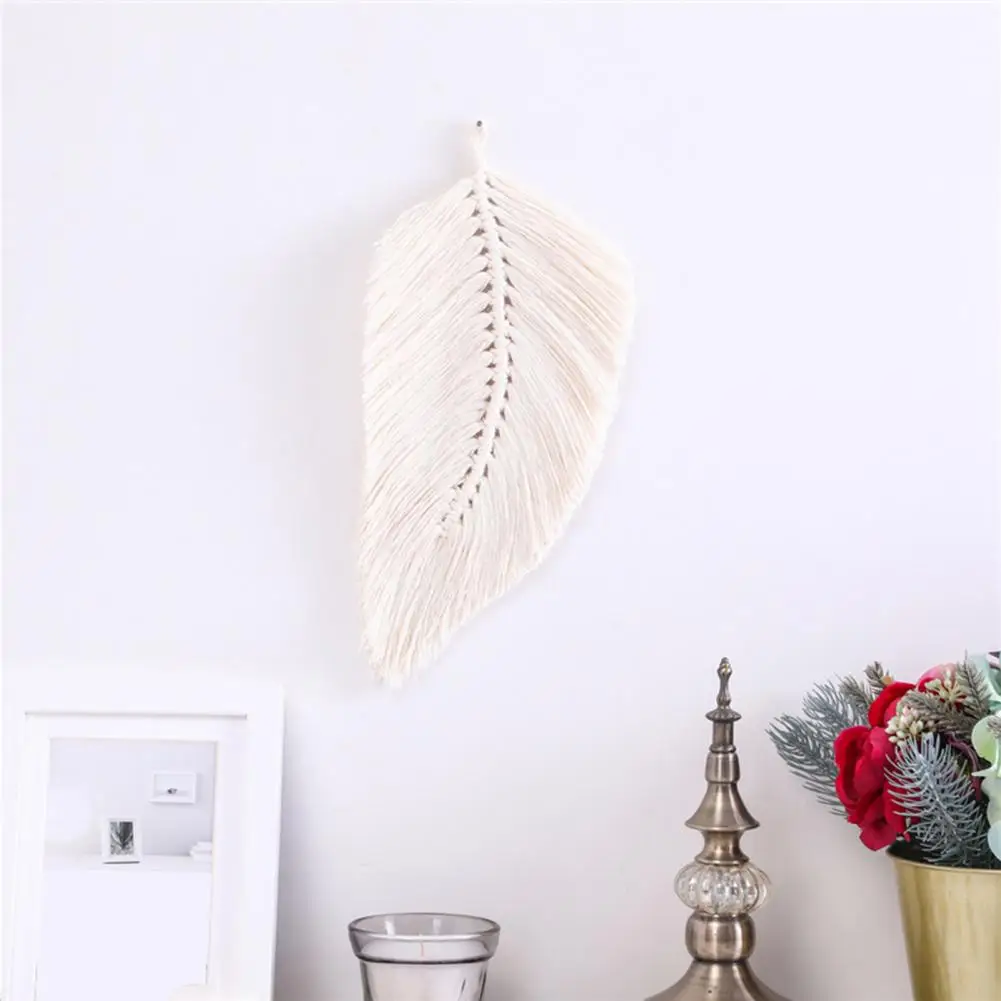 Тканый гобелен с перьями, мягкий хлопковый макраме тонкой работы, настенный подвесной перо в стиле бохо, шикарный тканый лист для стен, украшения для дома
