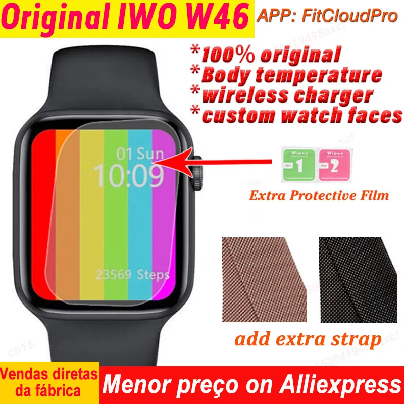 Смарт-часы iwo W46 мужские, водонепроницаемые, IP68, с беспроводной зарядкой, ЭКГ, пульсометром, температурой 44 мм, 40 мм