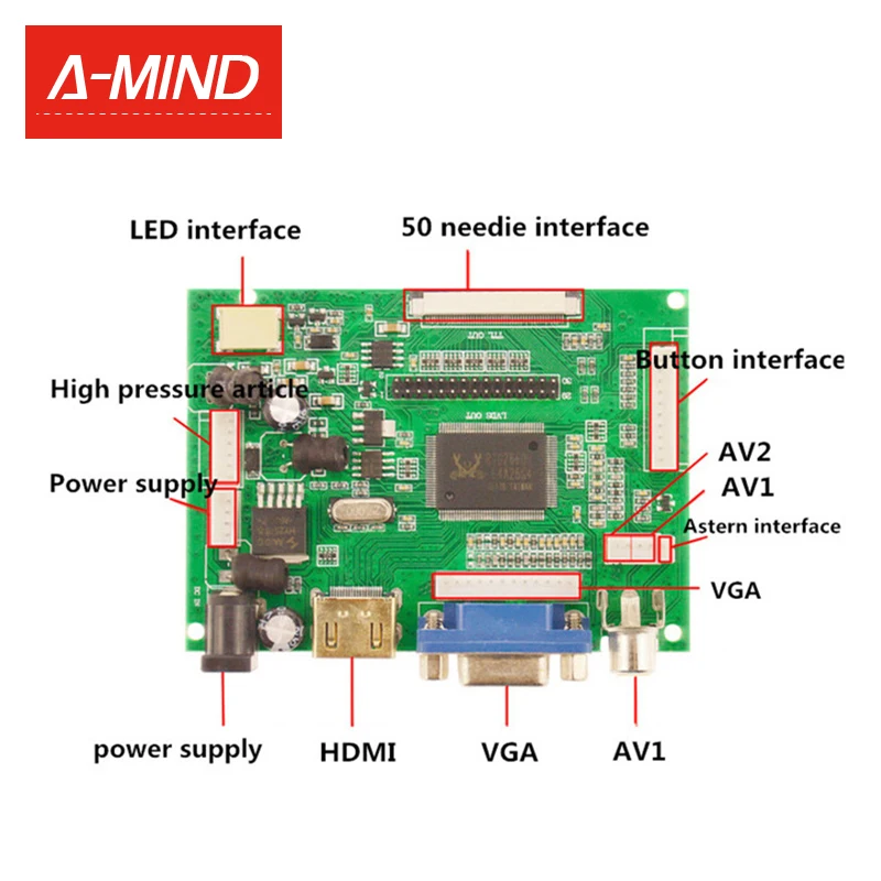 Плата контроллера LCD TTL LVDS, HDMI VGA 2AV 50 PIN для AT090TN10 T...