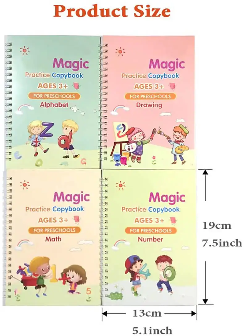 4 книги + ручка, многоразовая 3D Волшебная книга для упражнений для...