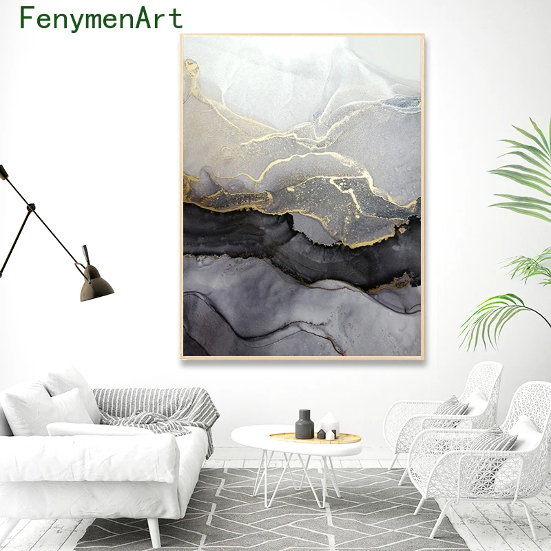 Абстрактная Картина на холсте золотисто-Серая Мраморная текстура скандинавские плакаты принты современные настенные картины для гостиной украшение для дома