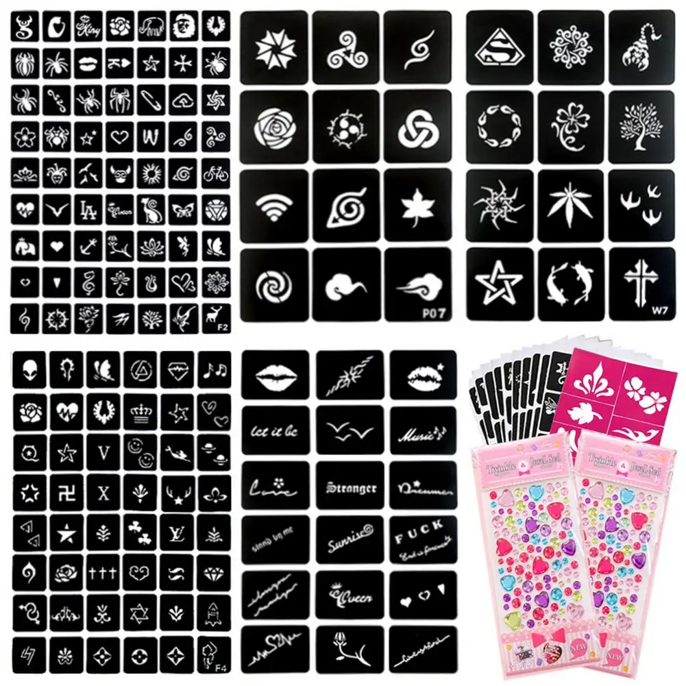 Блестки для боди-арта, набор для тату, 118 трафаретов с рисунком, порошок, кисть, клей, временные инструменты для тату, набор для рисования тела, блестящий порошок