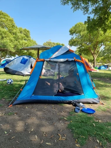 Поставляется в удобной сумке для переноски для компактного хранения и легкой транспортировки. Подходит для семейного туризма, альпинизма, кемпинга, музыкальных фестивалей, пикника, самовождения, детского кемпинга на заднем дворе, собаки спят, рыбалки и других видов активного отдыха.