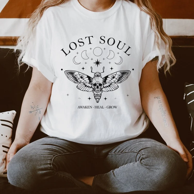 Футболка Pudo YF Luna в готическом стиле, черная рубашка оверсайз в...