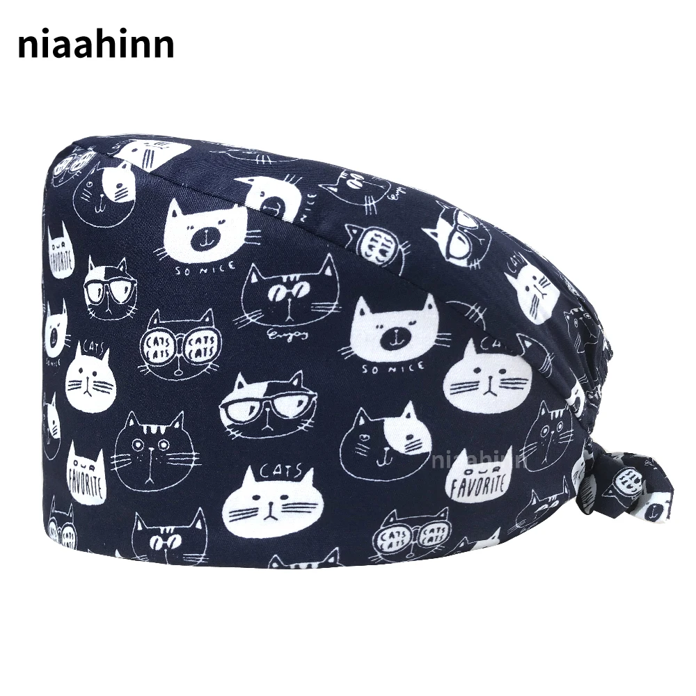 Шапочка для операционной с хлопковым принтом, регулируемая медицинская шапочка для врачей и медсестер, медицинский хирургический головной убор для домашних животных