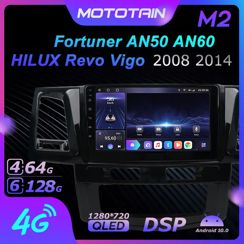 Автомагнитола Mototain 2 Din для Toyota Fortuner AN50 AN60 HILUX Revo Vigo Android 10,0 мультимедиа 4G LTE 6G 128G