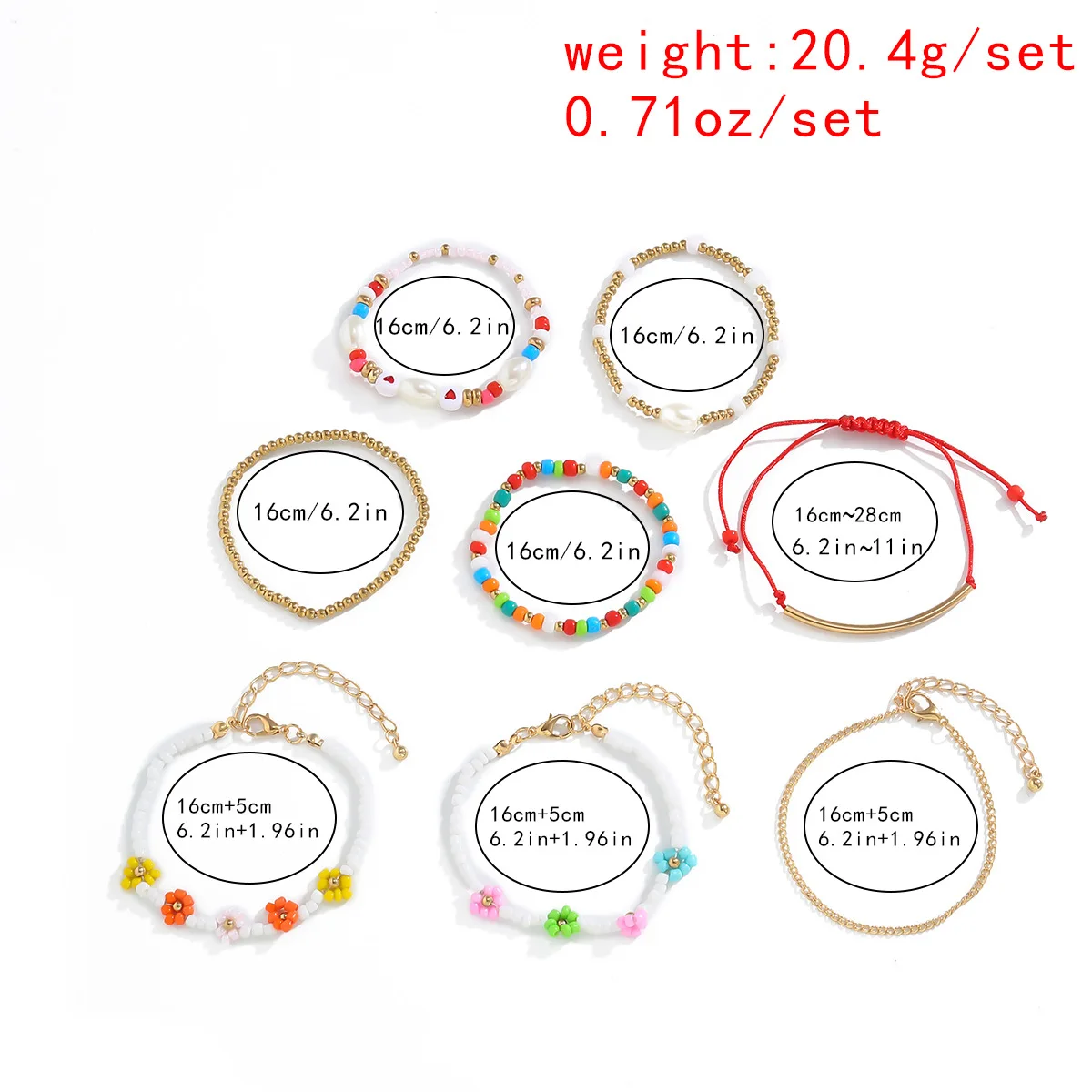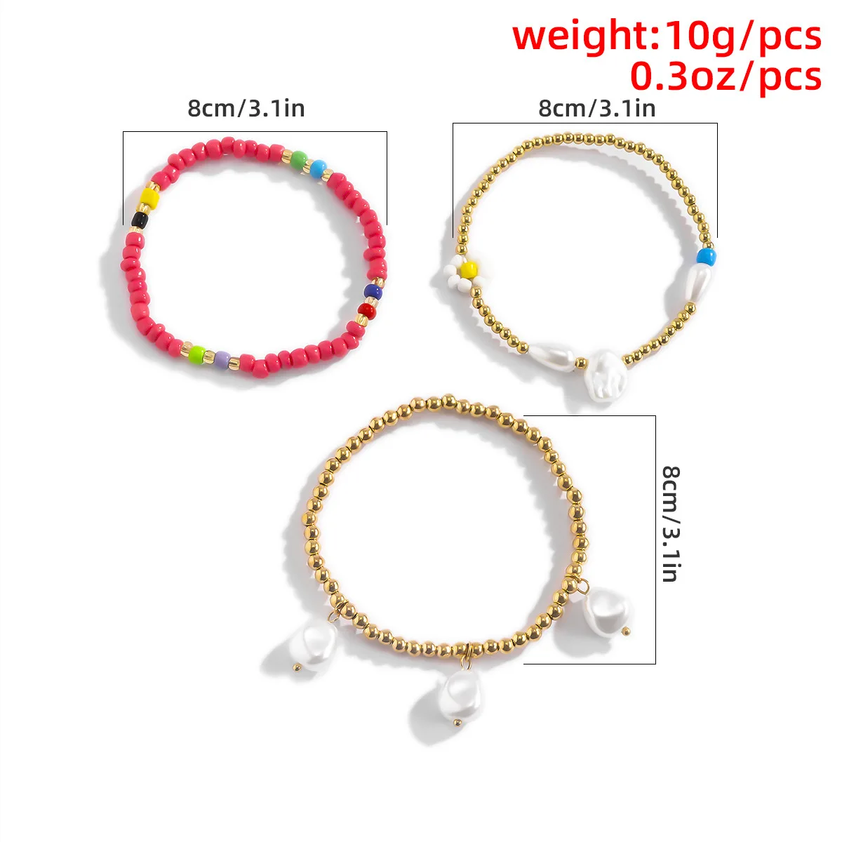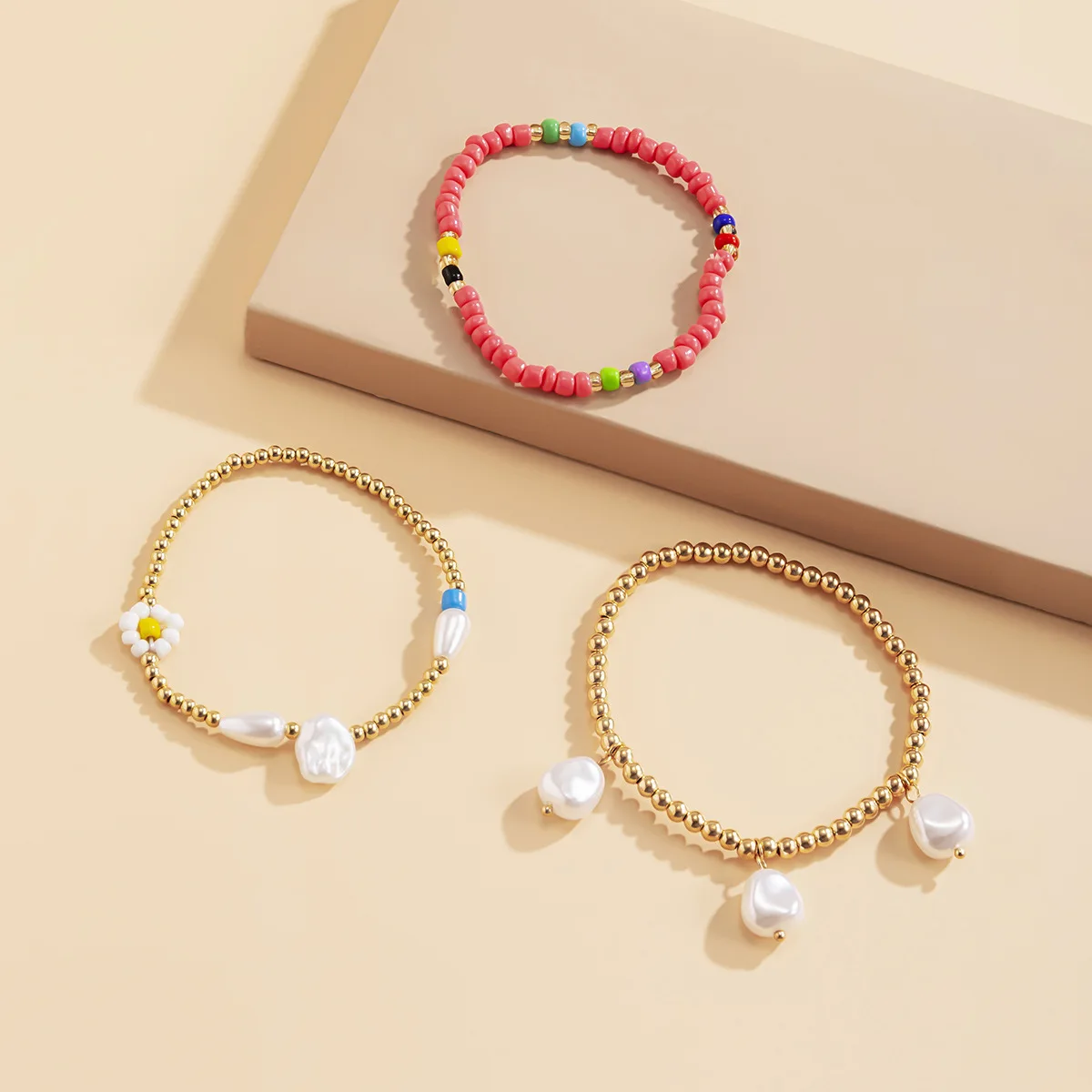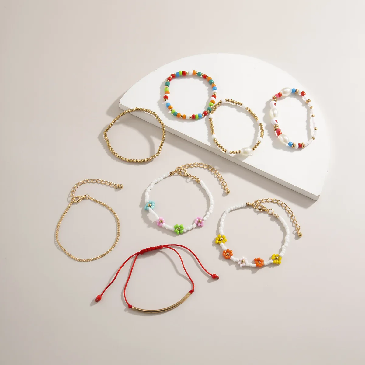 Браслет женский многослойный с бусинами, рисовыми металлическими бусинами и цветами