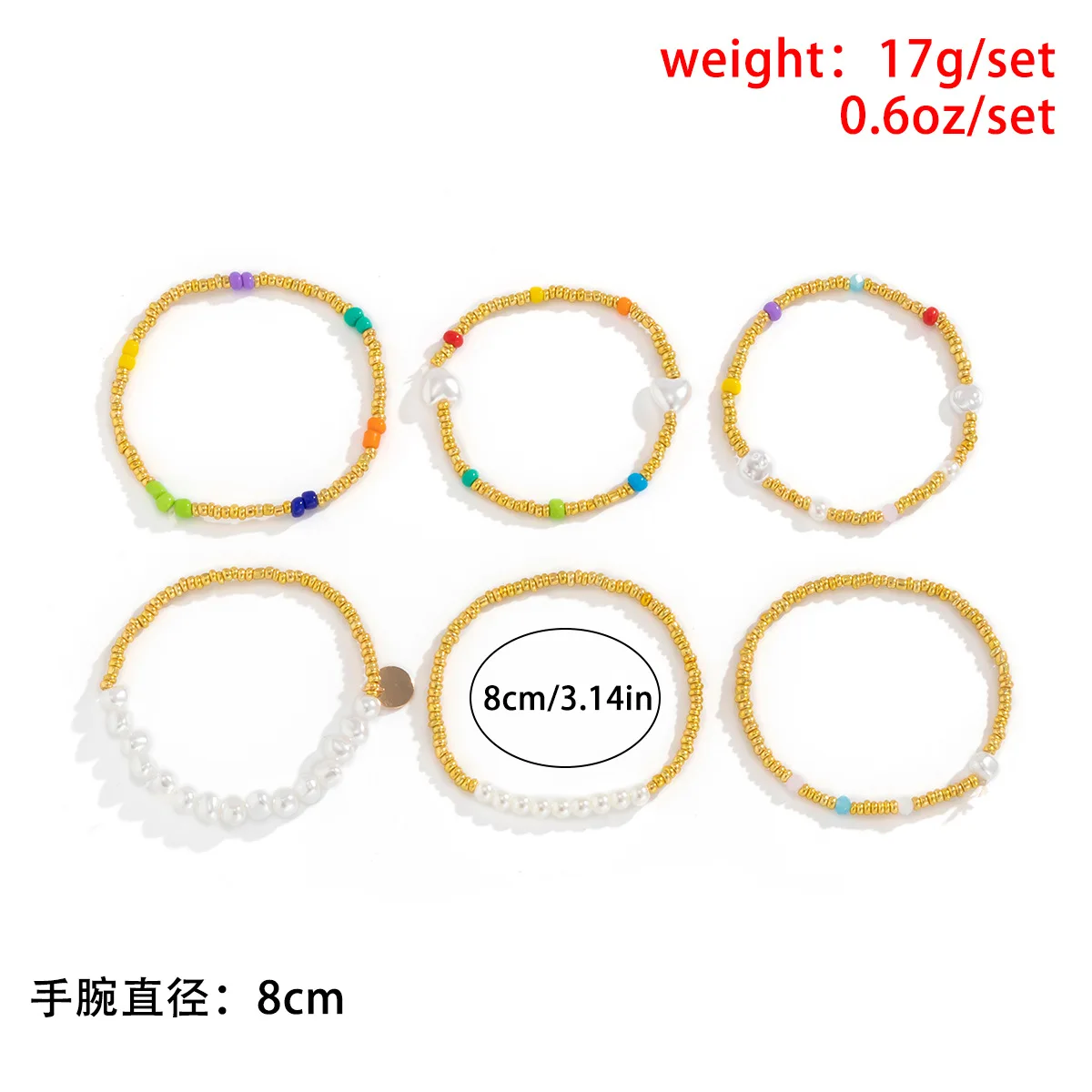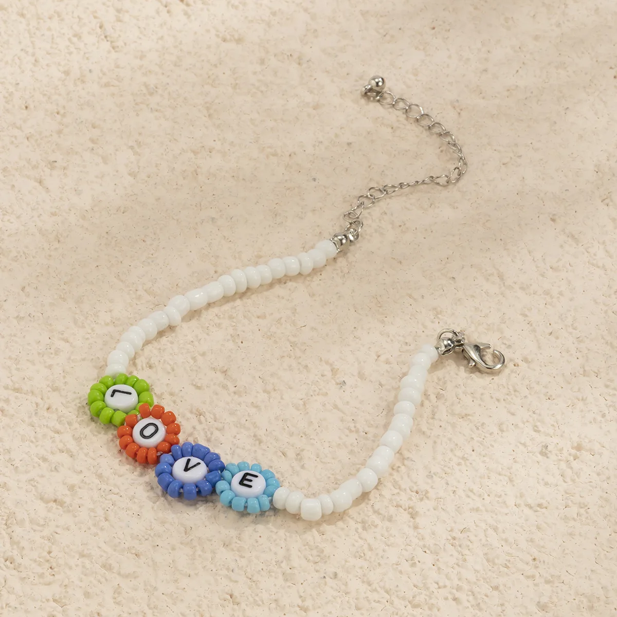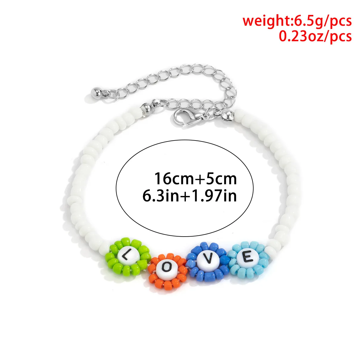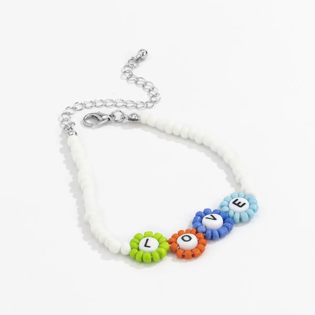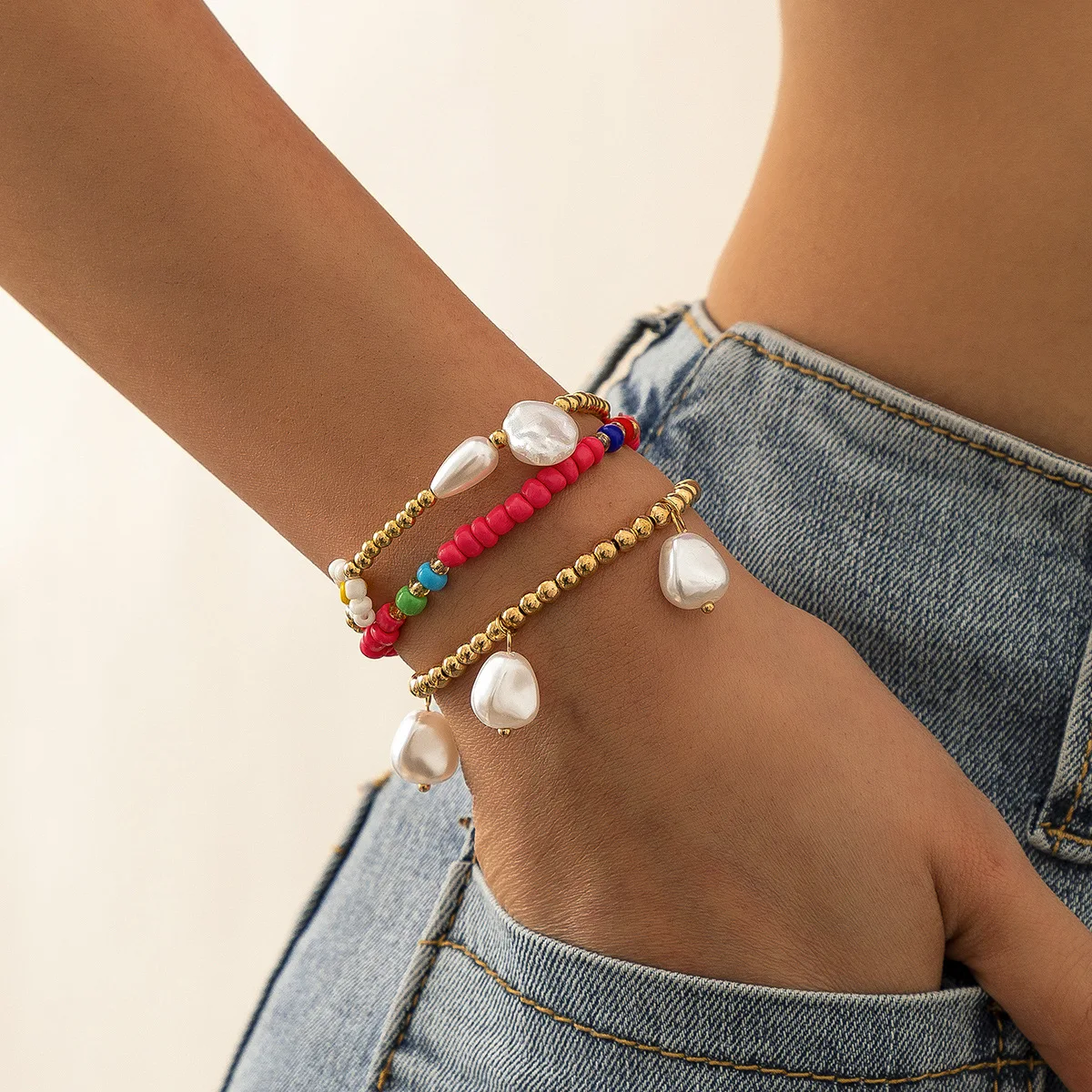 Браслет женский многослойный с бусинами, рисовыми металлическими бусинами и цветами