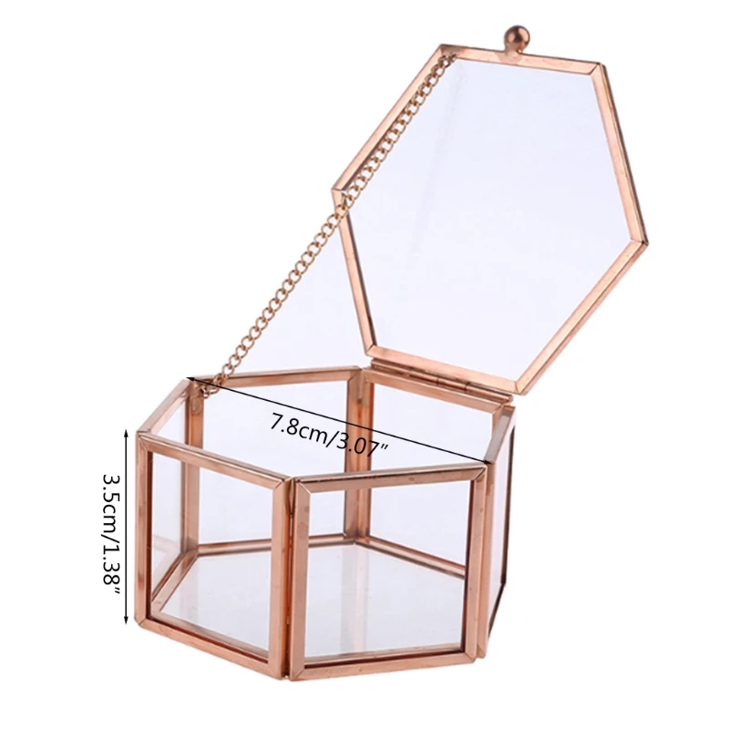 Шестигранная прозрачная коробка для колец из розового золота, Свадебный геометрический органайзер для ювелирных изделий A5KE