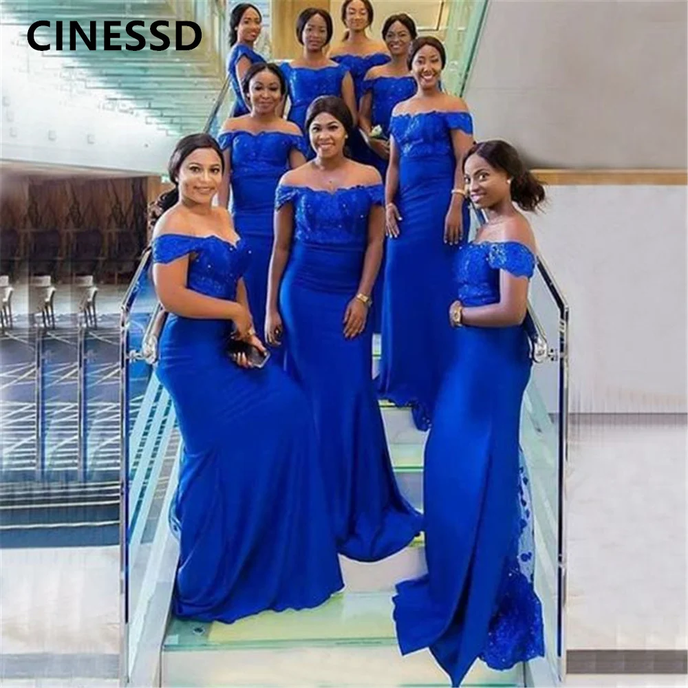 Женское платье с открытыми плечами Royer, синее платье для свадебной вечеринки, женское платье для подружки невесты, кружевная бисерная Русалка, 2021