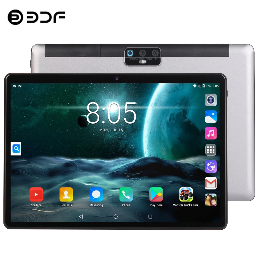 Планшет Pro, экран 10,1 дюйма, 2 Гб ОЗУ 32 Гб ПЗУ, четырехъядерный процессор, Android 9,0, поддержка телефонных звонков, WiFi, GPS, Bluetooth, две SIM-карты
