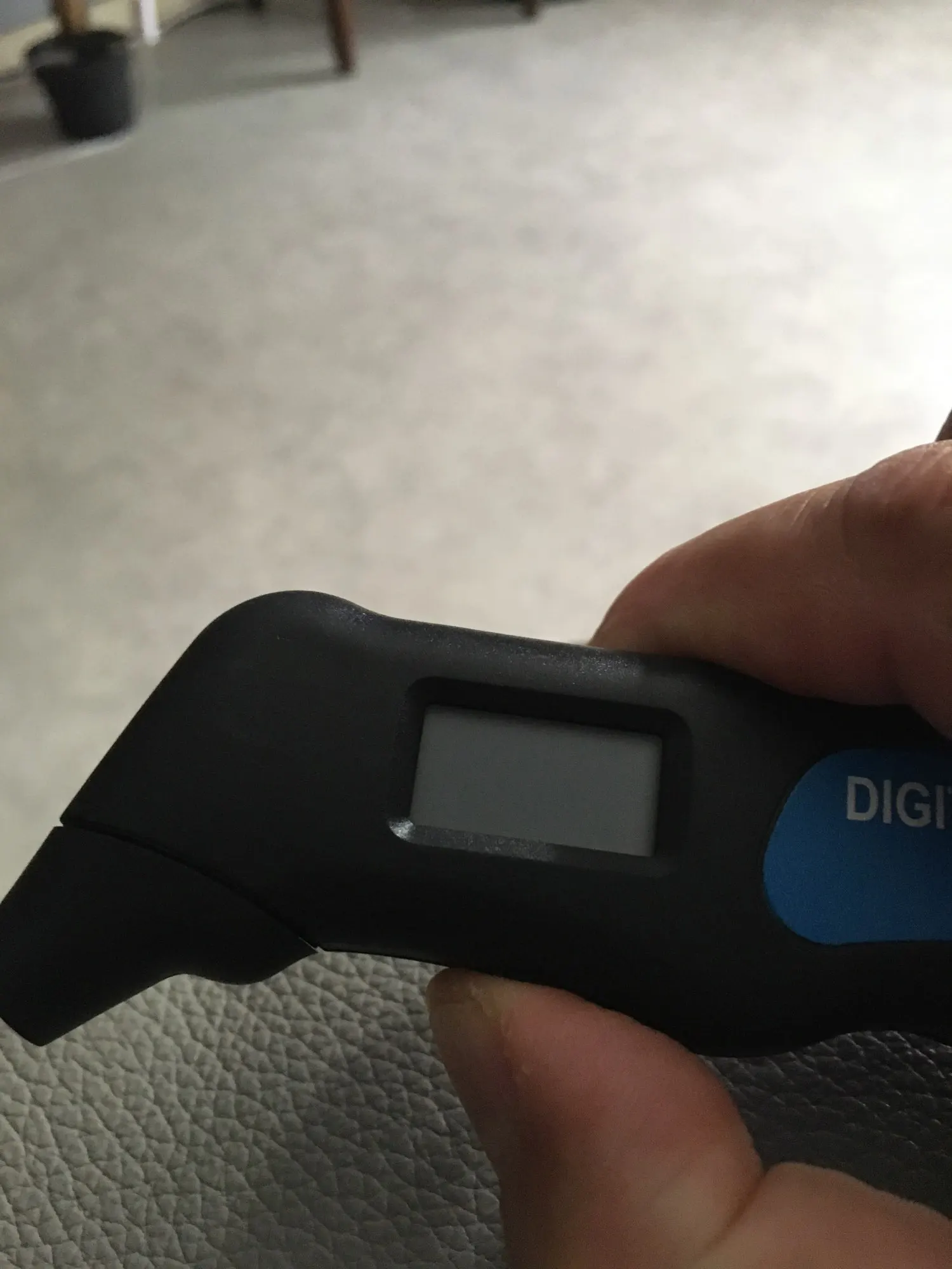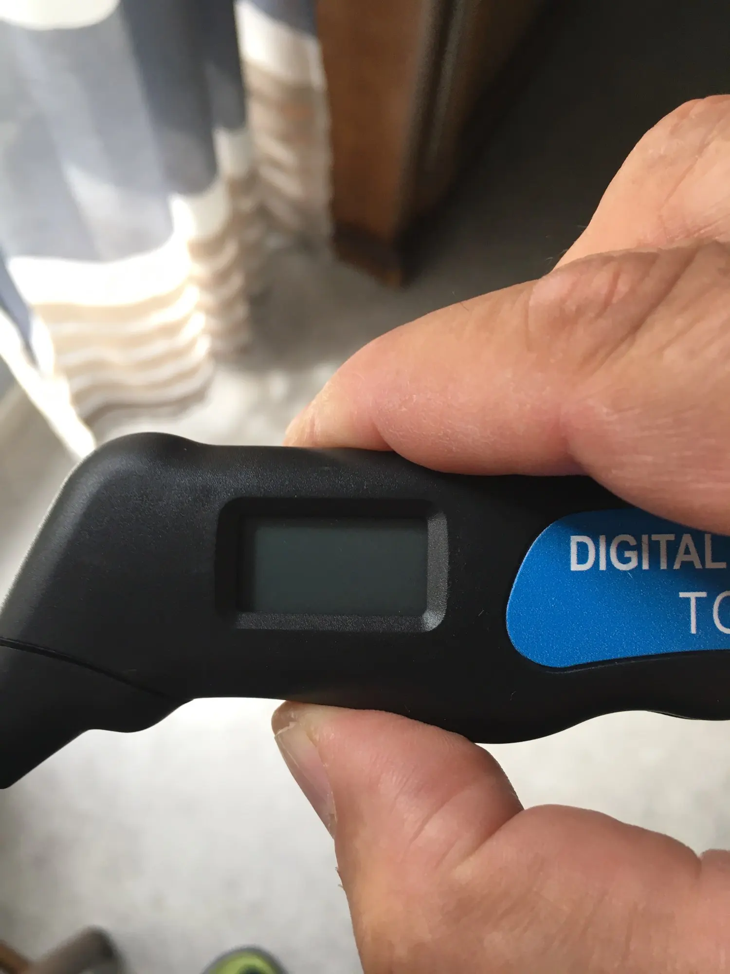 B. Выровняйте сопло манометра с клапаном шины и плотно нажмите на него, чтобы убедиться, что сопло и клапан находятся в хорошем контакте, и нет шипящей утечки воздуха. Через 3 секунды снимите Манометр с клапана и прочитайте точное давление в шинах, данные поддерживаются в течение 15 секунд. После того, как данные будут очищены, переместите манометр в другие шины, чтобы продолжить испытание.