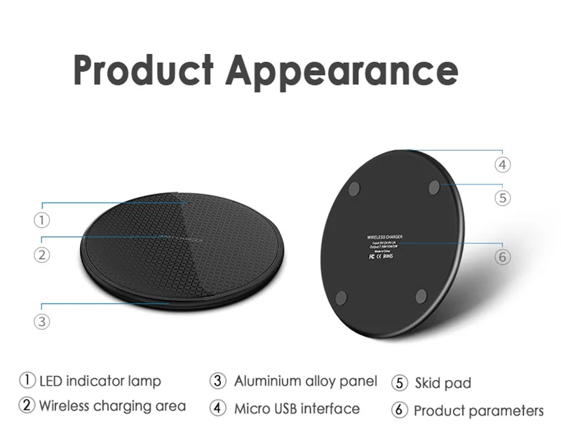 Быстрое беспроводное зарядное устройство для любых типов телефонов, беспроводное зарядное устройство со светодиодным индикатором, ультратонкий процесс производства из алюминиевого сплава