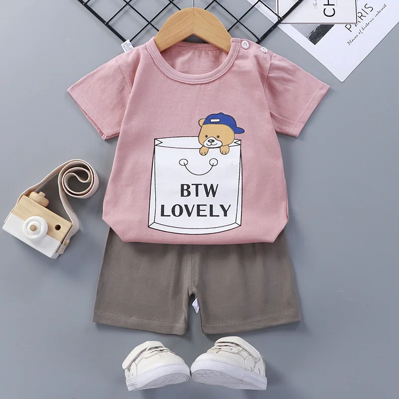 Детский костюм с короткими рукавами летняя хлопковая одежда с шортами для мальчиков новая футболка в Корейском стиле для маленьких девочек, костюм из 2 предметов