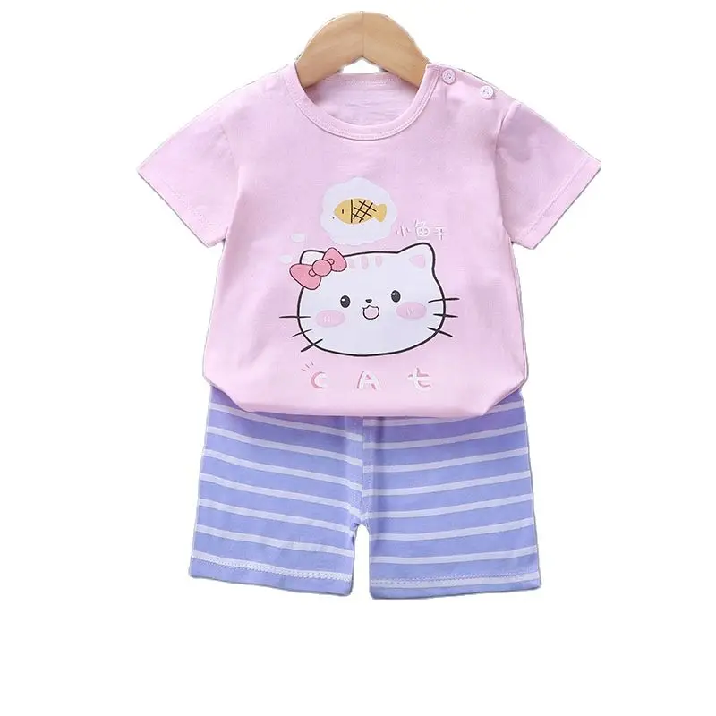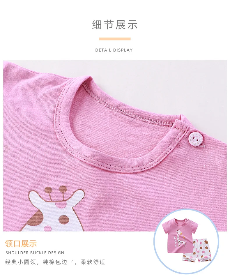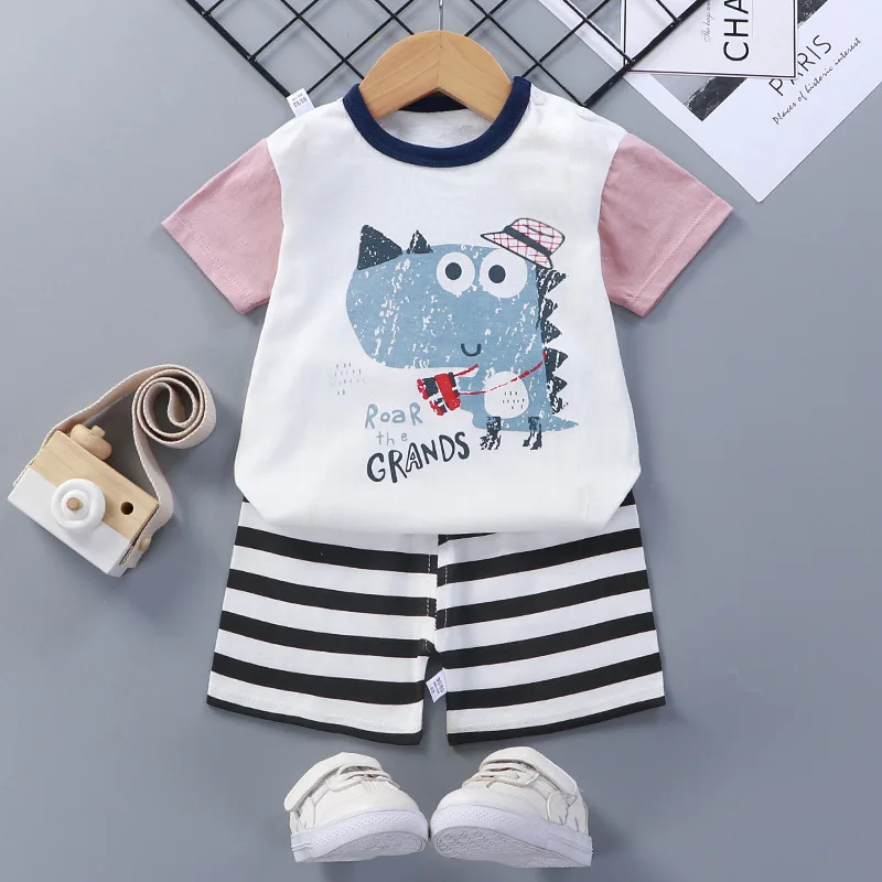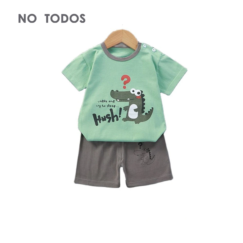 Детский костюм с коротким рукавом, летний хлопковый костюм с шортам...