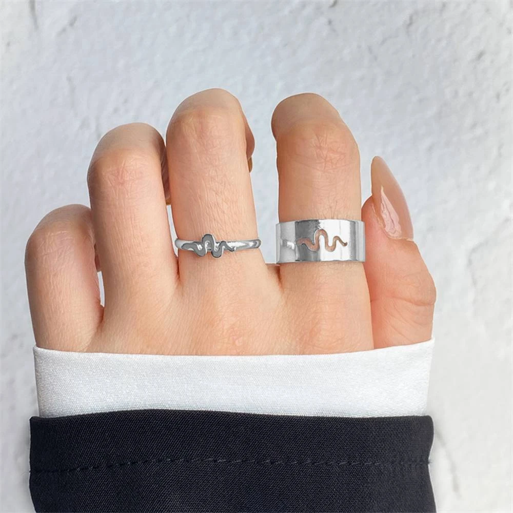 Модного серебристого цвета со змеиным рисунком кольца для мужчин и женщин парные кольца для влюбленных комплект дружбы обручальные разомкнутые кольца 2021 вечерние ювелирные изделия