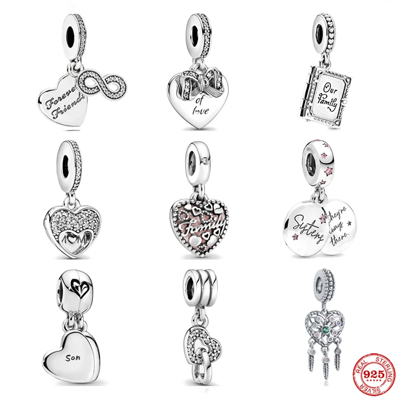Новое поступление, подвеска из стерлингового серебра 925 пробы в виде сердца для друзей и семьи, подходящая к оригинальному браслету Pandora, ожерелье, ювелирные изделия